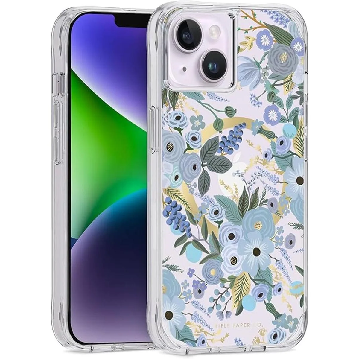 Garden Party Blue: Fabricado con Rifle Paper Co. La vibrante funda con patrón floral para iPhone 14 proporciona estilo y protección con una técnica de impresión única y tinta especial para evitar que el diseño se frote, se desvanezca o manche; esta lujosa funda para iPhone 14 añade estilo a tu personalidad y es un regalo perfecto para tu familia, amigos y seres queridos