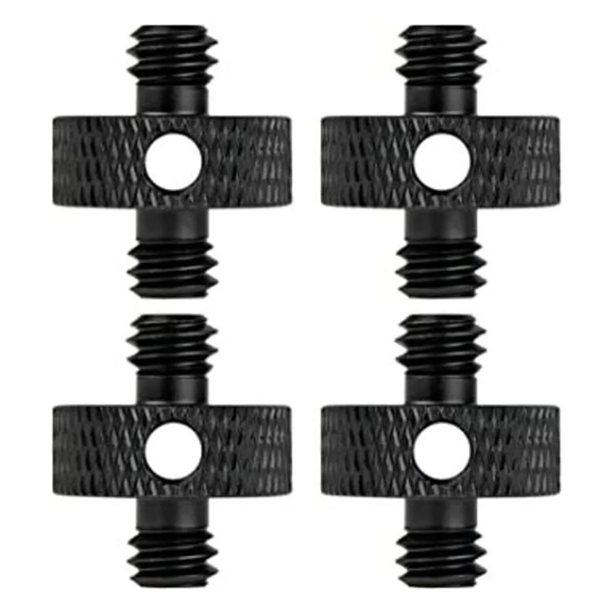 Rigych Adaptador de tornillo roscado de trípode macho a 14 macho con agujero para montaje de cámara para cámara, trípode de micrófono, soporte de luz de montaje de micrófono, jaula de cámara DSLR, 4 piezas negro