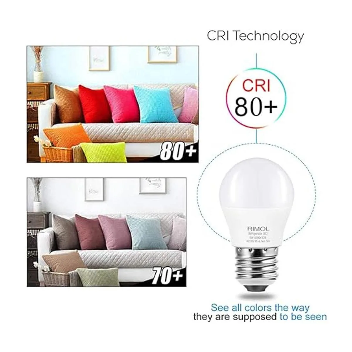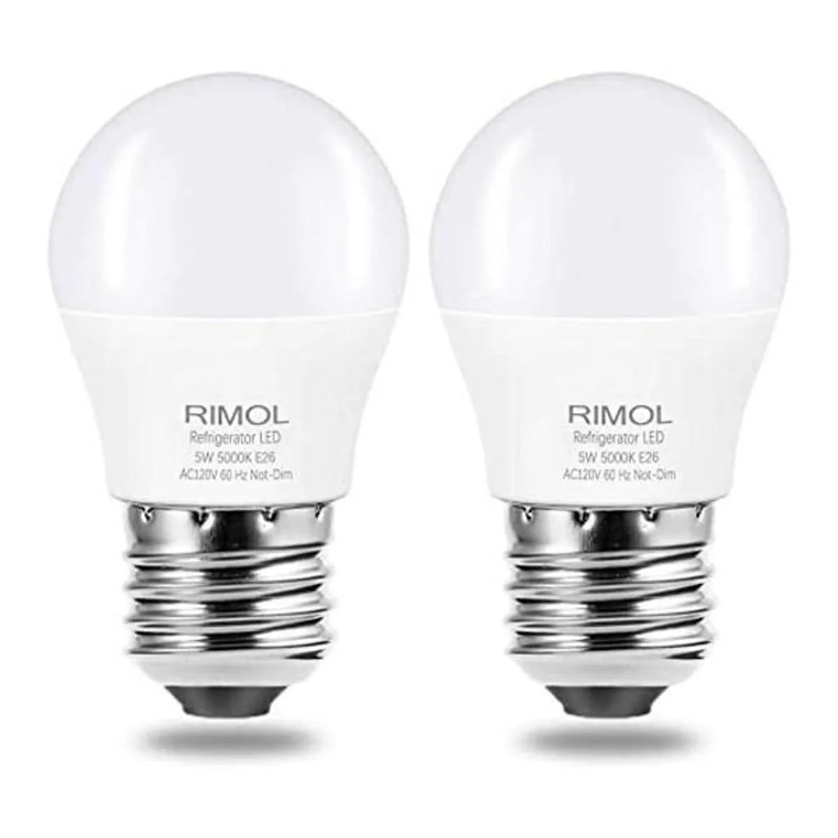 RIMOL Bombilla para nevera, equivalente a 40 W, 120 V, A15, LED, 5 W, luz del día, 5000 K, E26, base media, ahorro de energía, para congelador, iluminación de techo, sin tensión, impermeable, 2 unidades
