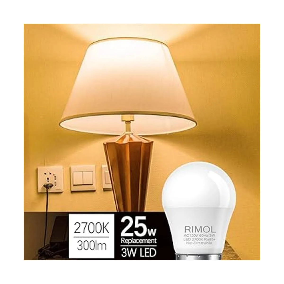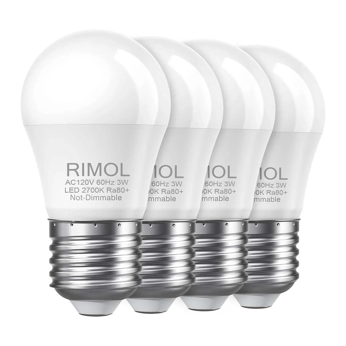 RIMOL Bombillas equivalentes a 25 W, bombilla LED A15 de 3 W, color blanco suave, 2700 K, ahorro de energía, bombillas de bajo vatio, bombilla E26 para dormitorio paquete de 4