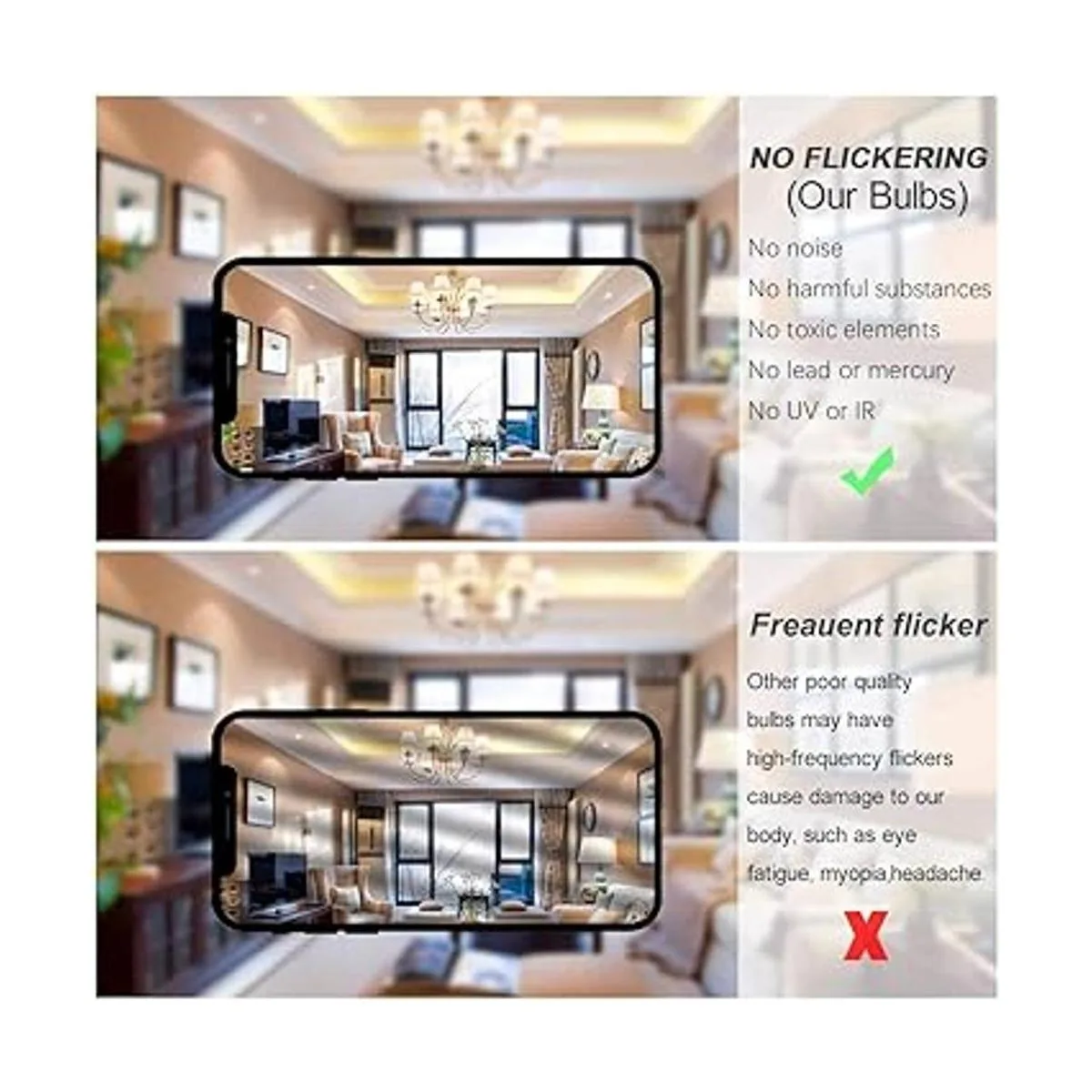 Sin parpadeo y sin ruido: la última tecnología LED avanzada elimina el parpadeo y el ruido de nuestras bombillas, reduciendo el sufrimiento de algunos problemas de salud como agotamiento de los ojos, migraña, etc., lo que podría ser causado por luces parpadeantes y ruido de bombillas de mala calidad.