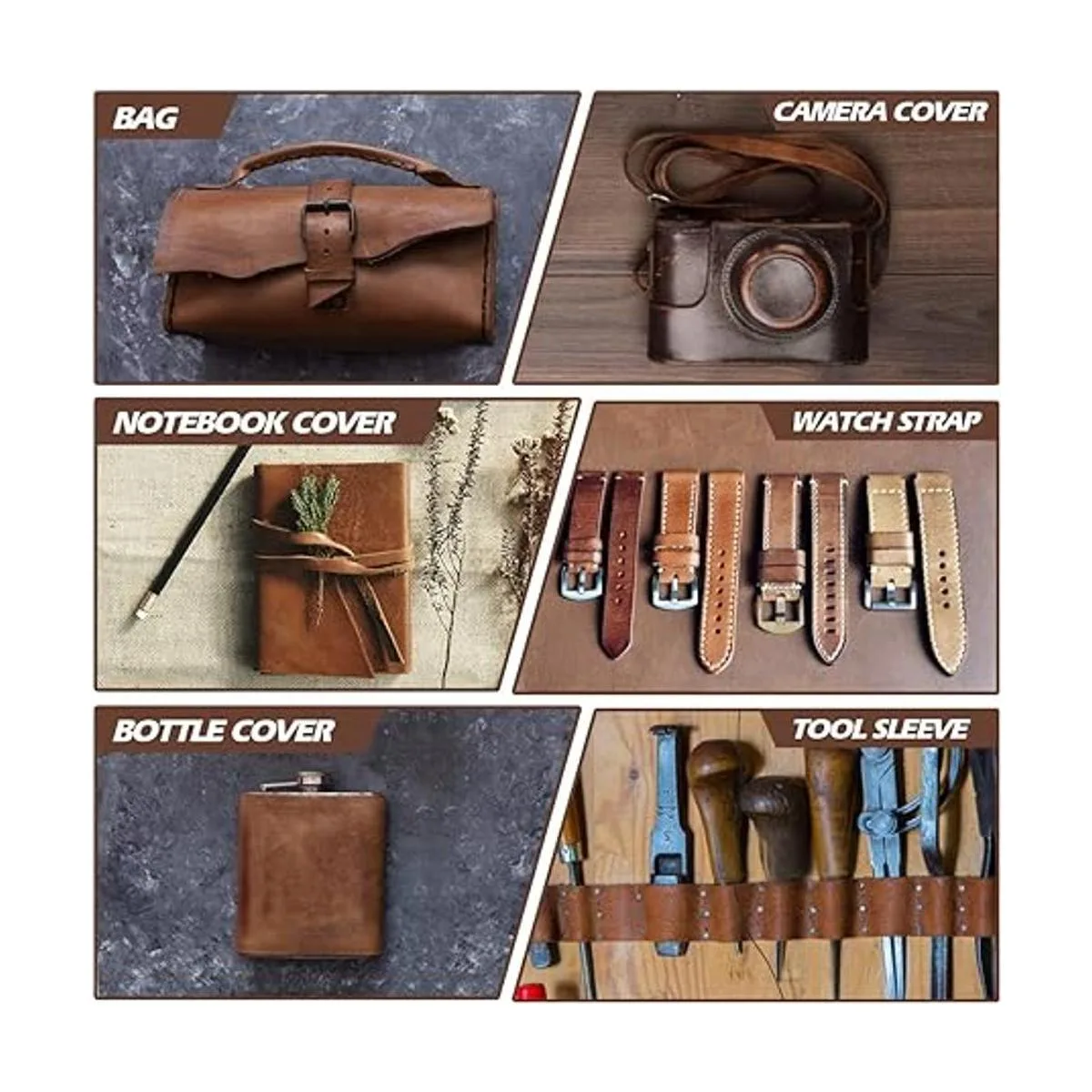 Aplicación: la piel de cuero se puede utilizar en todos los proyectos de manualidades de cuero, como tallado, teñido, relieve, funda, hoja, estampado, bolso, cartera, funda, zapatos, plantillas, sombreros, cinturones, carcasas de iPhone, fundas de iPad y otros proyectos de manualidades de cuero. Ideal para artes, manualidades, herramientas, estampado, costura, propiedades de tallado, taller de pasatiempos.