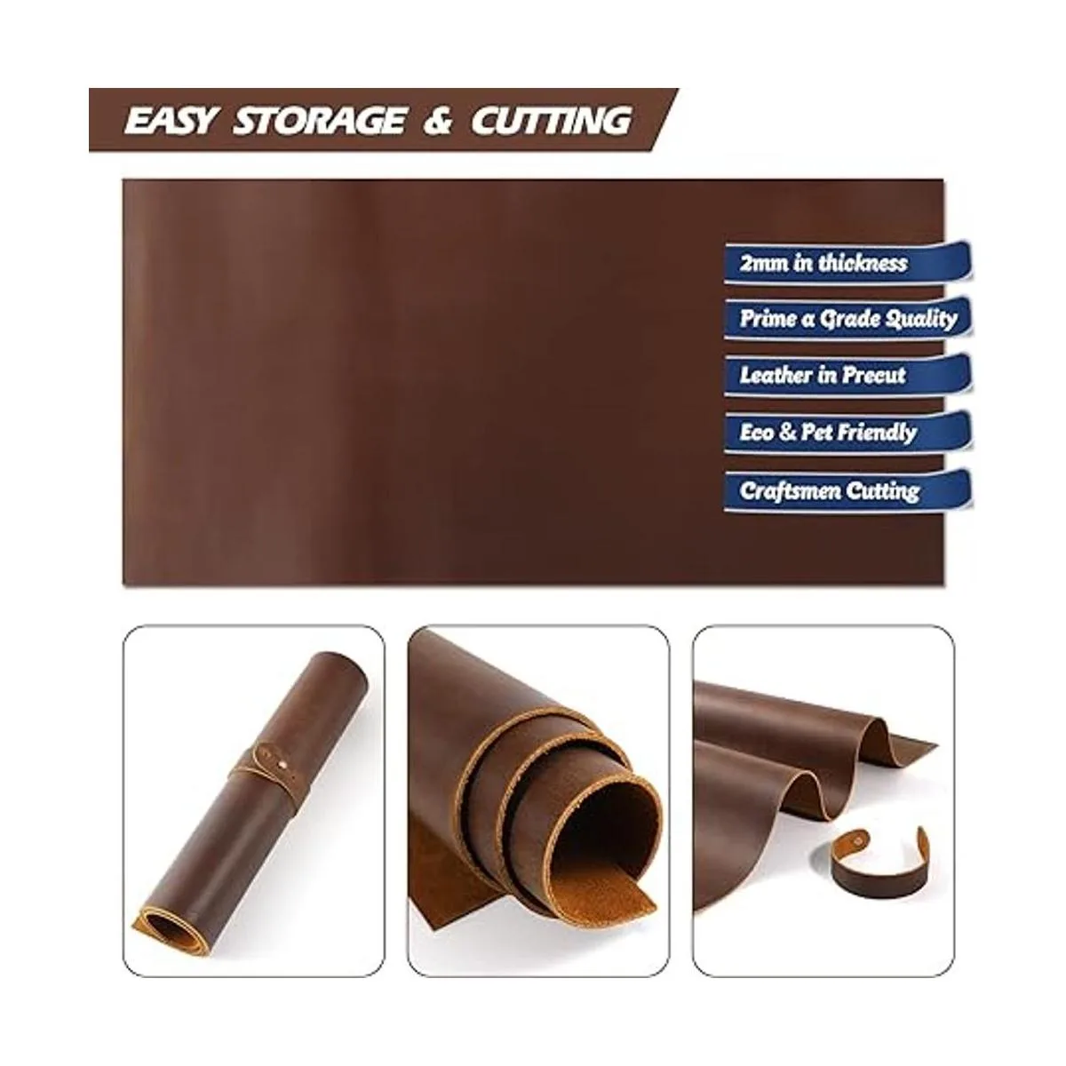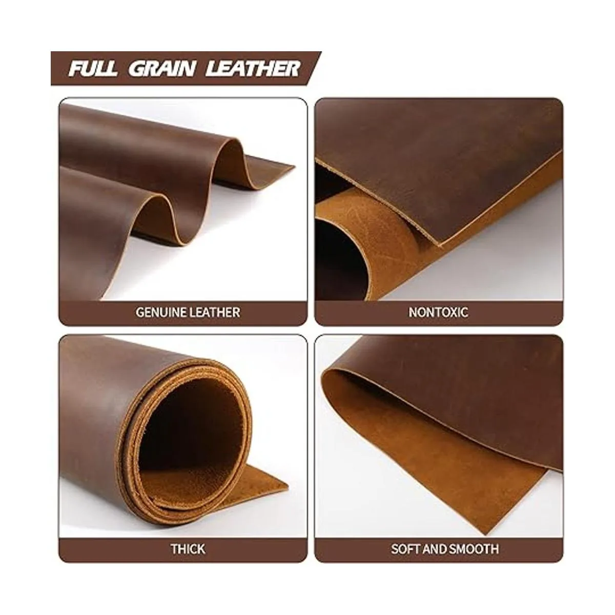 RingSun Hojas de cuero genuino de 12 x 24 pulgadas para manualidades, cuero de grano completo 0.079 in de grosor, piezas de cuero de vaca cuadrado, marrón oscuro
