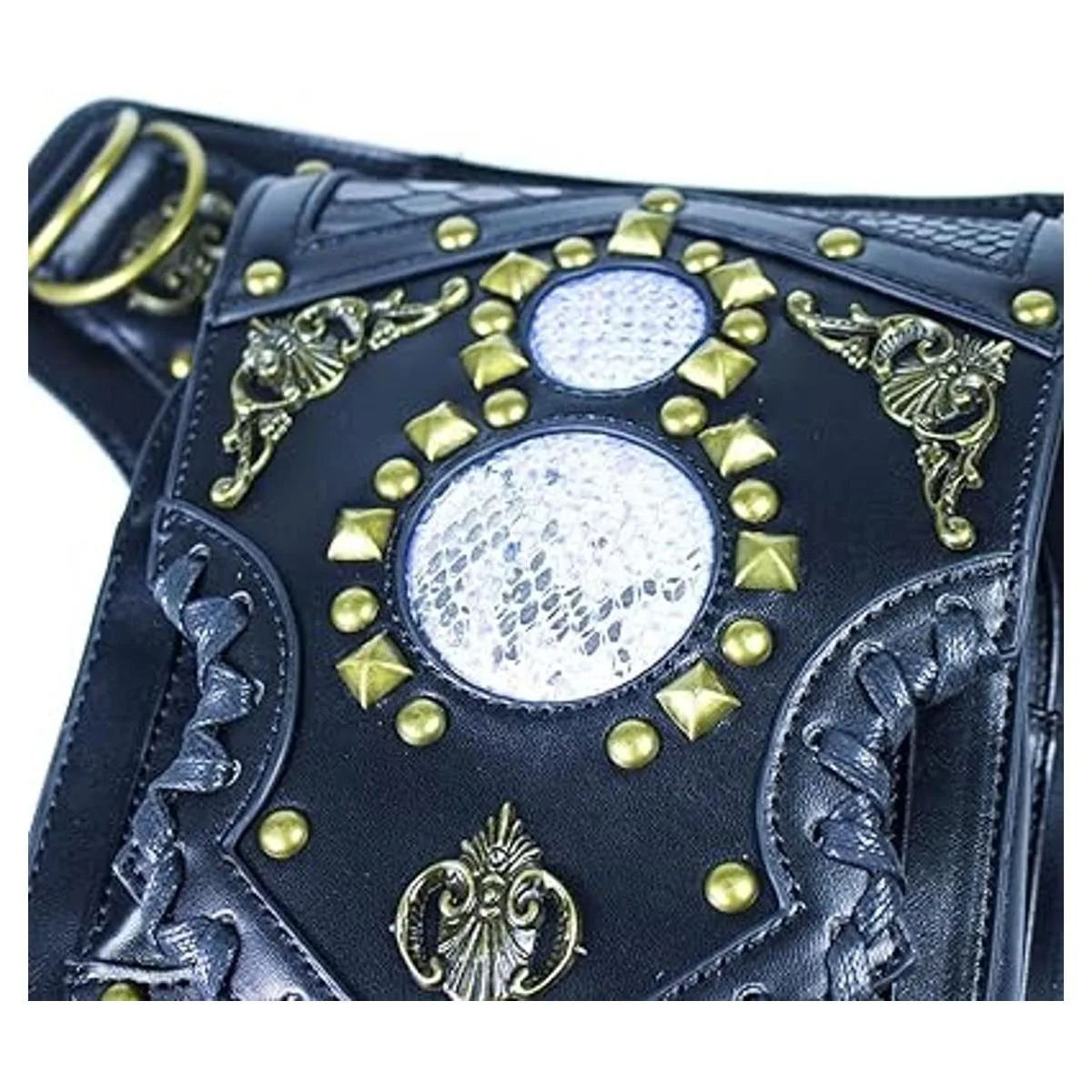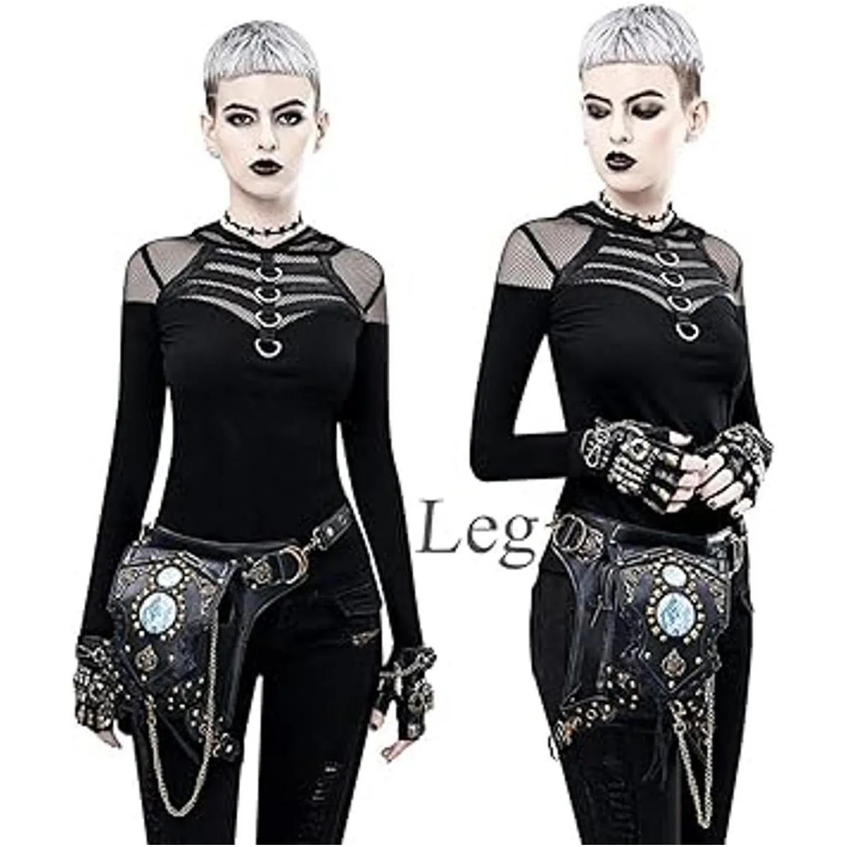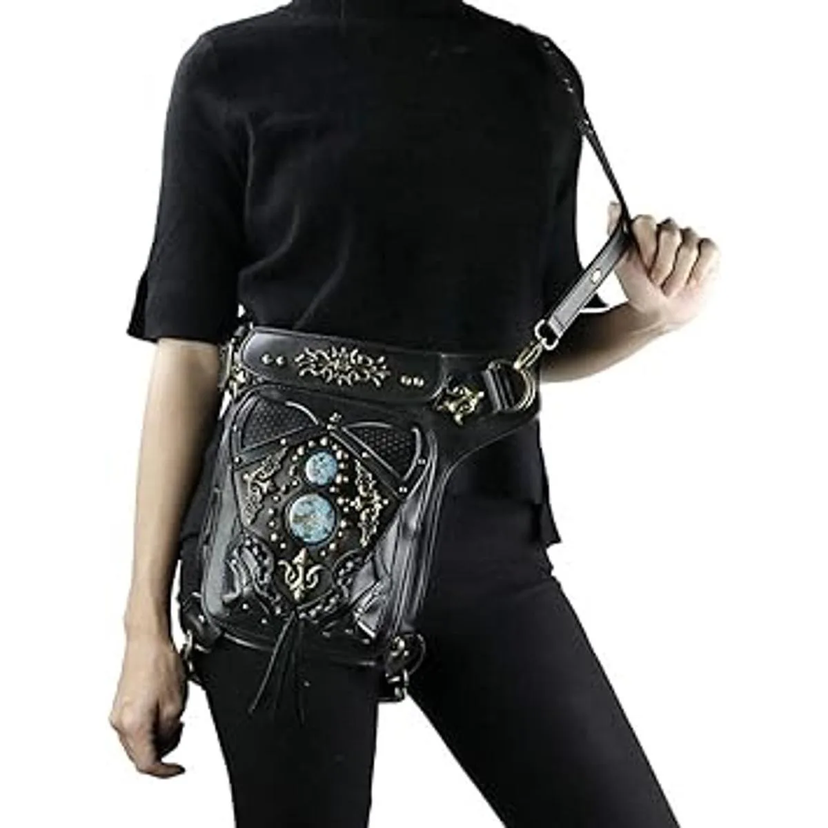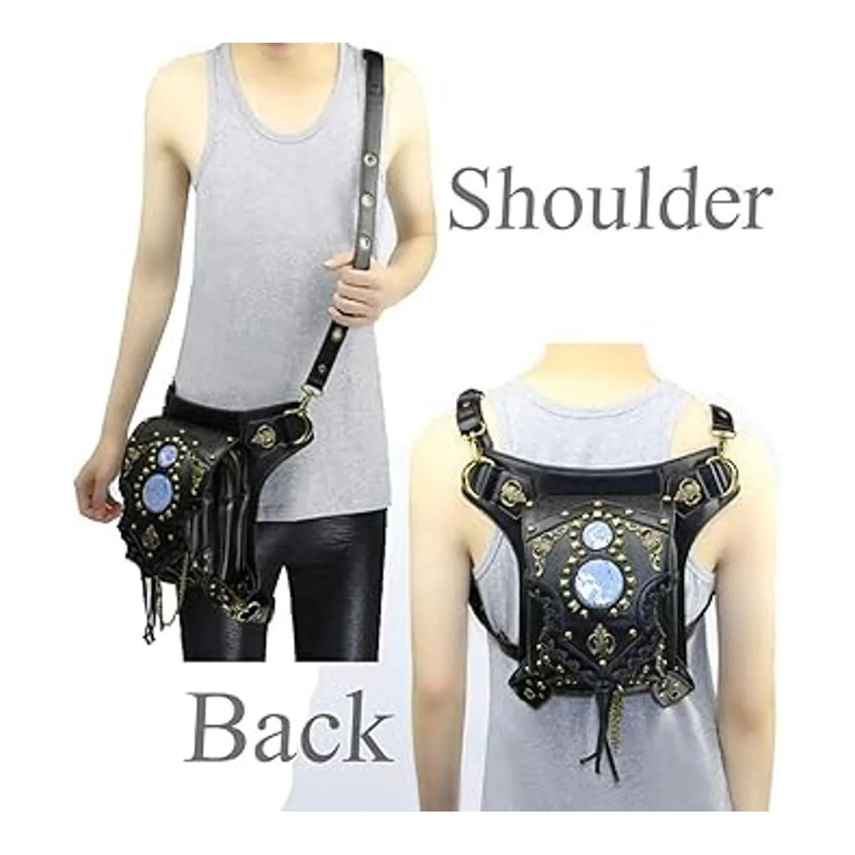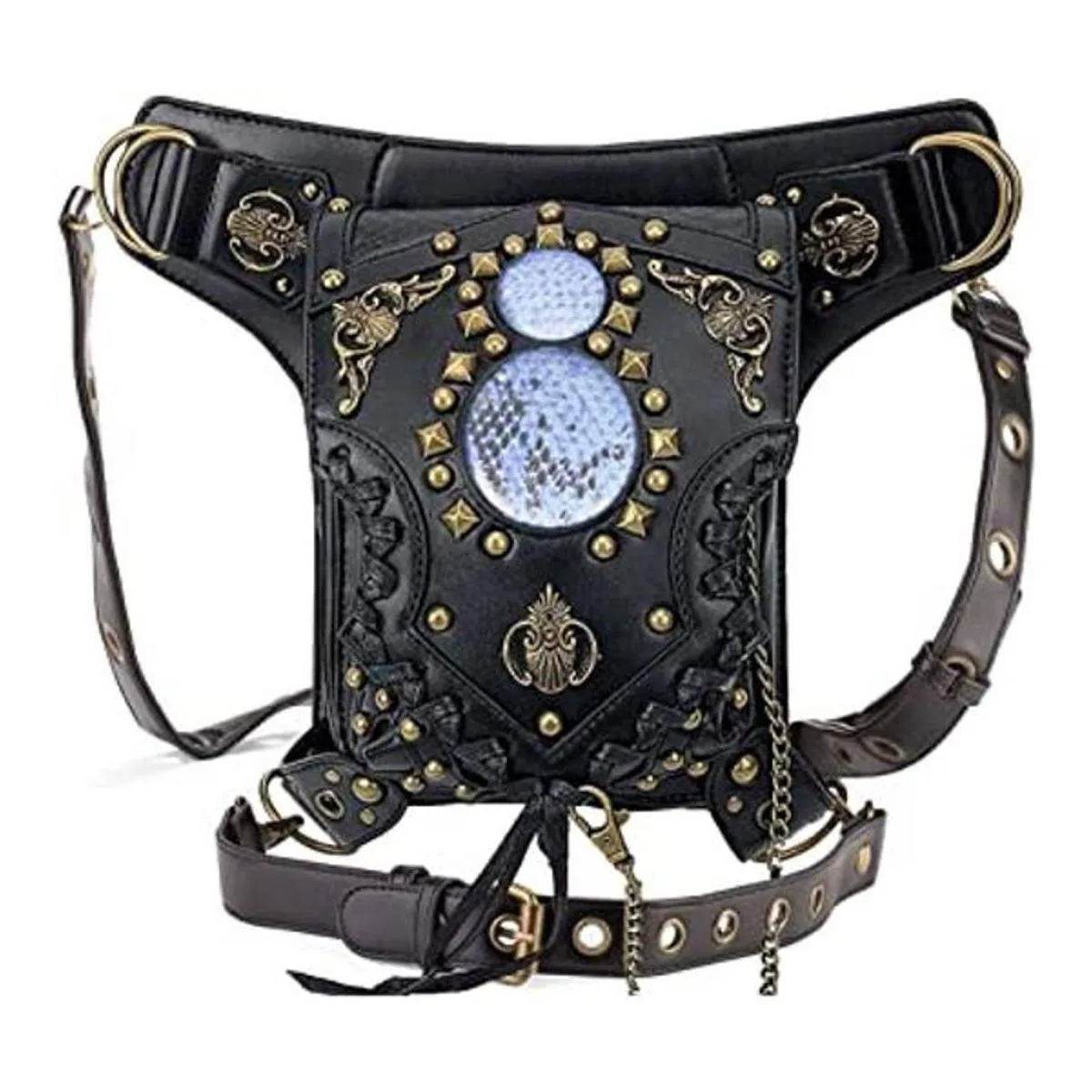 Riñonera gótica de cuero Steampunk bolso de cadena de pierna, bandolera de hombro, bolsa de cadera