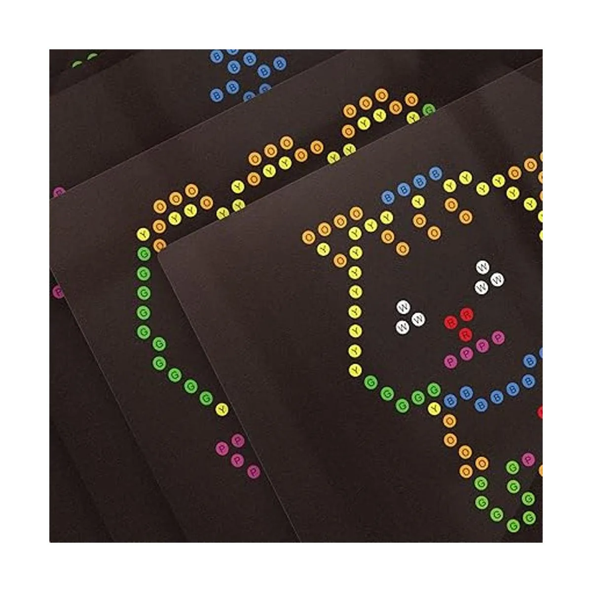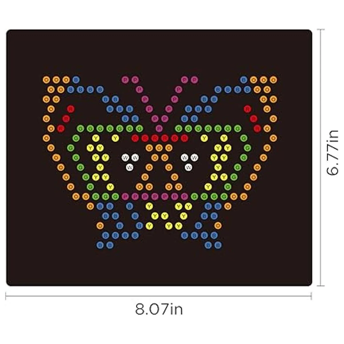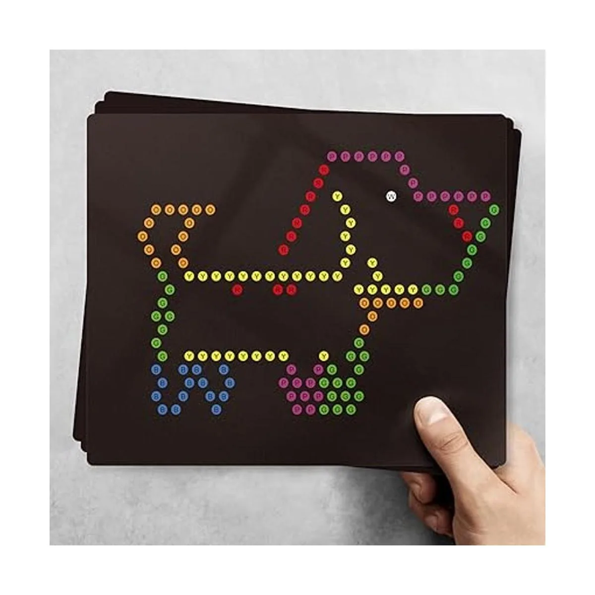 El paquete incluye 20 plantillas de diseño tamaño 8 pulgadas de ancho x 6 pulgadas. 8 pulgadas de alto: tema animal. Las plantillas están etiquetadas con letras de la clavija de color para ser insertadas en cada agujero.