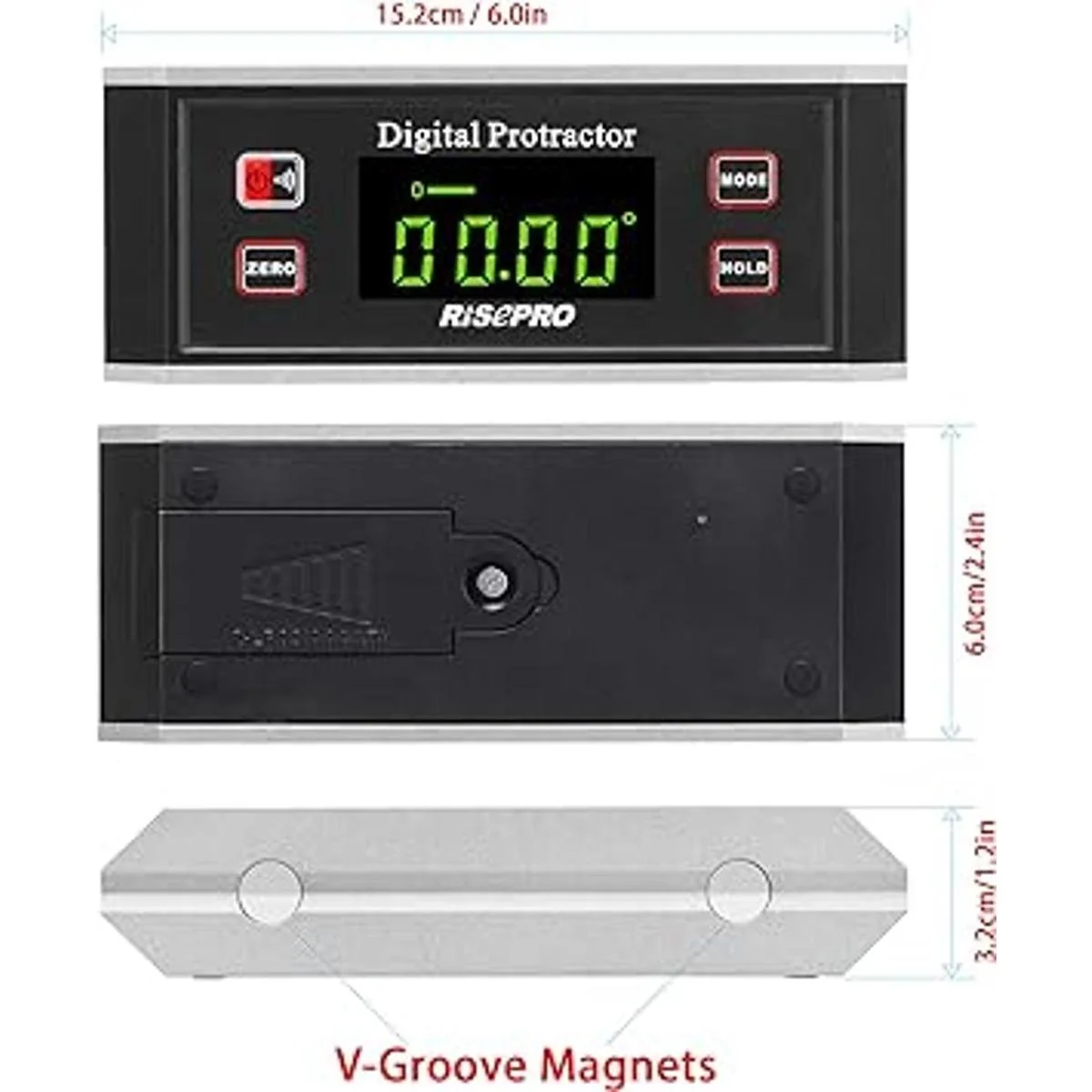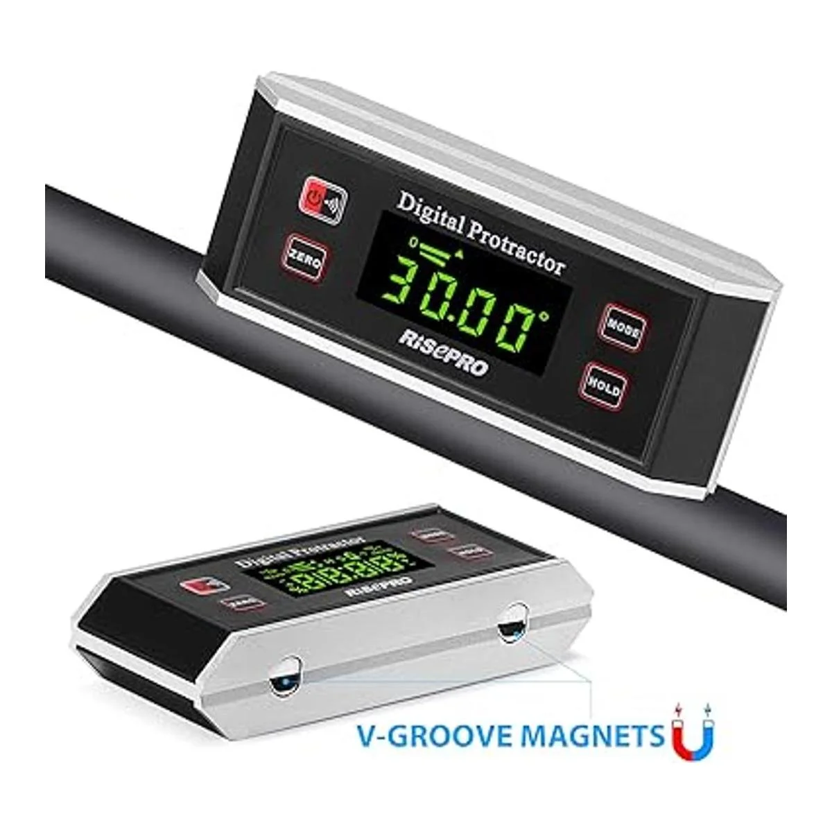 RISEPRO Inclinómetro, transportador digital, buscador de ángulo, inclinómetro magnético en V de 0 360 grados con retroiluminación 82413B