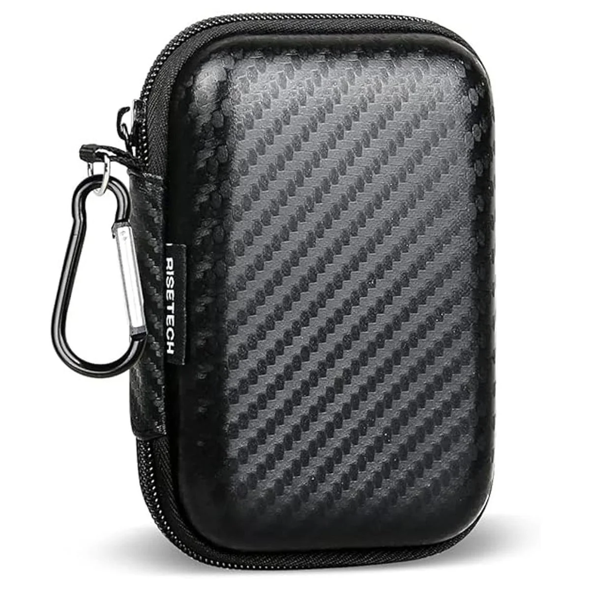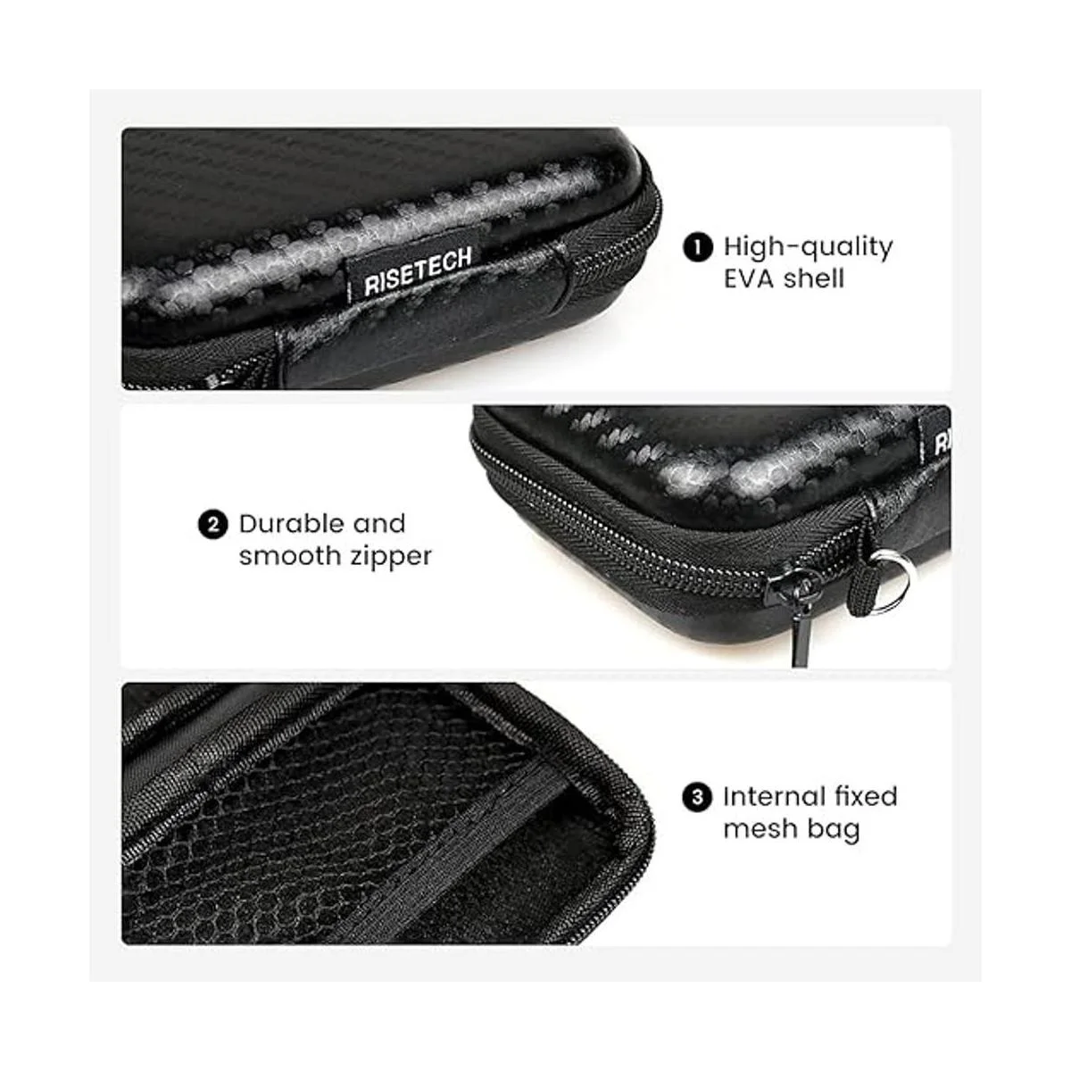 RISETECH Funda de transporte para auriculares, mini bolsa de almacenamiento para auriculares, bolsa pequeña, accesorios para teléfono celular, organizador para auriculares, Airpods Beats Flex Bose con cable, cable USB, cargador de pared