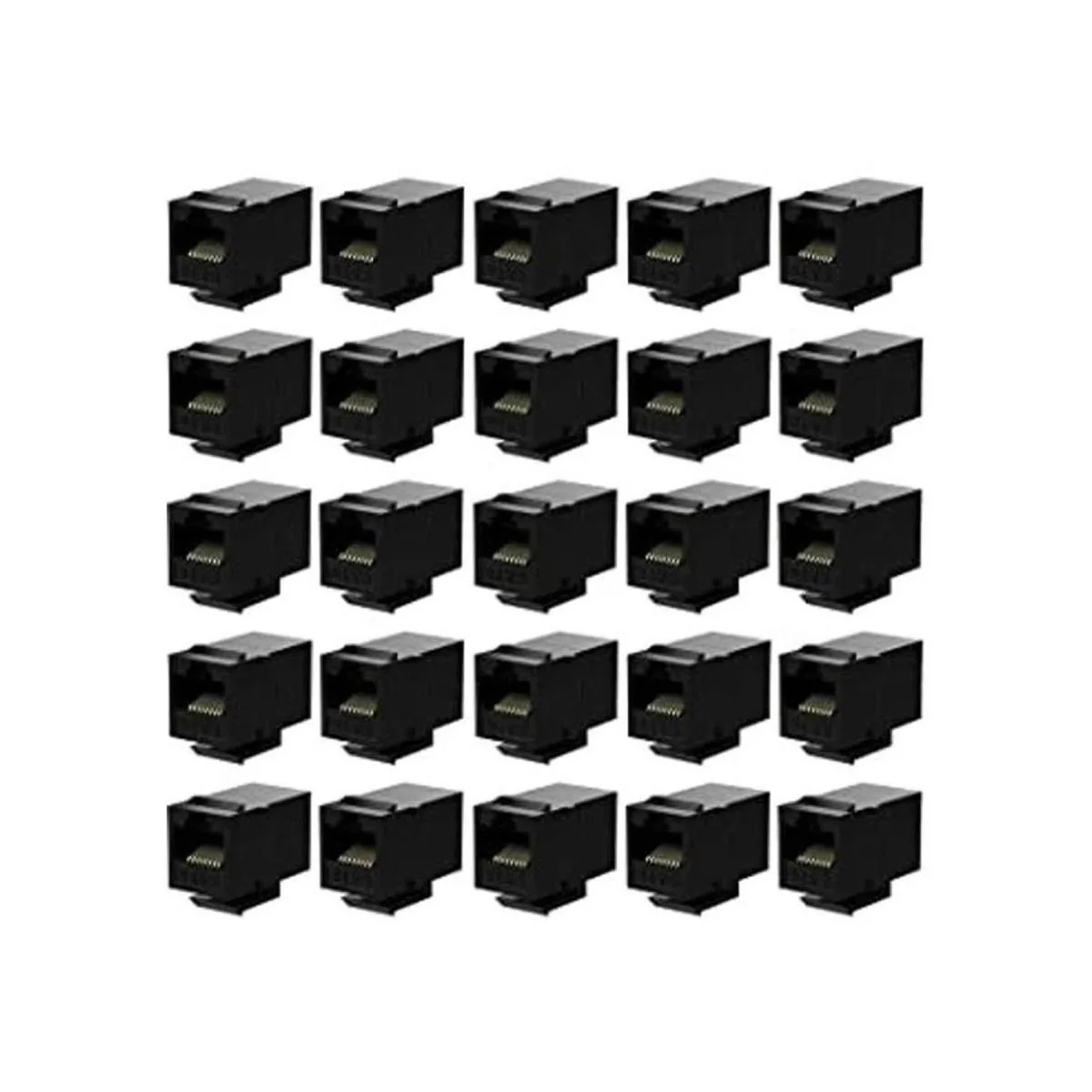 Rj45 Acoplador Cat6 Keystone Jack Acoplador en línea hembra a hembra Acoplador de inserción 25 Pack Negro