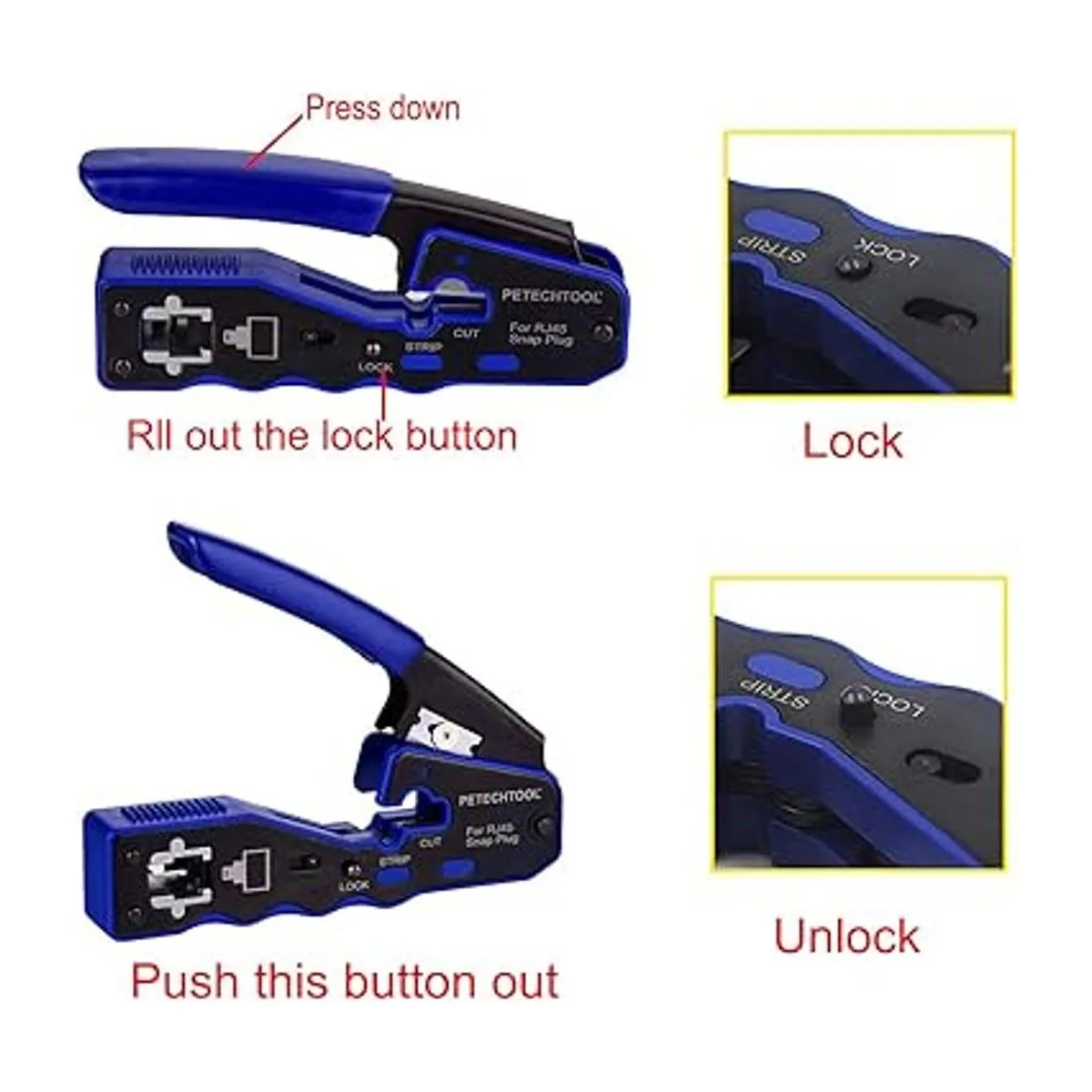 RJ45 Crimp Tool para Cat5e Cat6 Cat6a Pasa Thrugh Conectores con 20 piezas Cat6 Conectores y 20 Piezas Botas