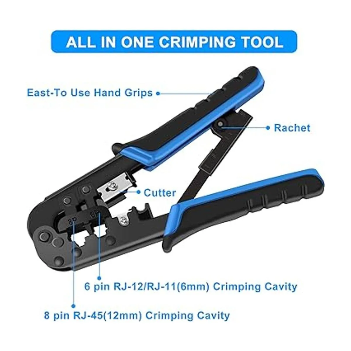 Duradero y seguro: herramienta de crimpado Ethernet rápida y fiable con estructura de cuerpo de acero para mayor durabilidad con agarres ergonómicos y cómodos. La liberación de seguridad del trinquete y un protector de hoja en los cuchillos de corte y pelado reducen el riesgo de lesiones.