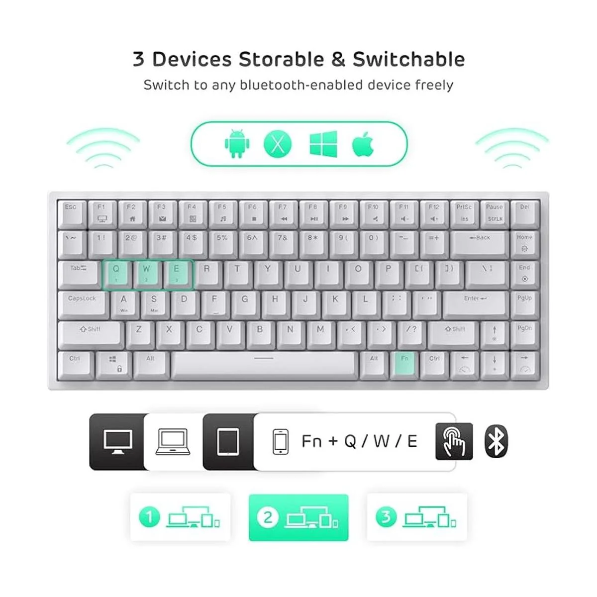 RK ROYAL KLUDGE RK84 80 RGB triple modo BT5.02.4Gteclado mecánico con cable de intercambio rápido, teclado inalámbrico de 84 teclas, Bluetooth para juegos, interruptor rojo silencioso