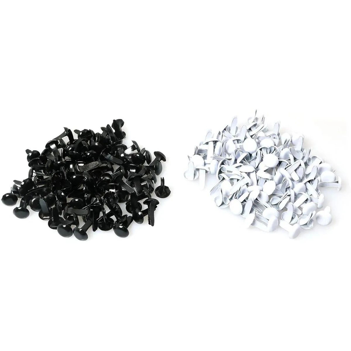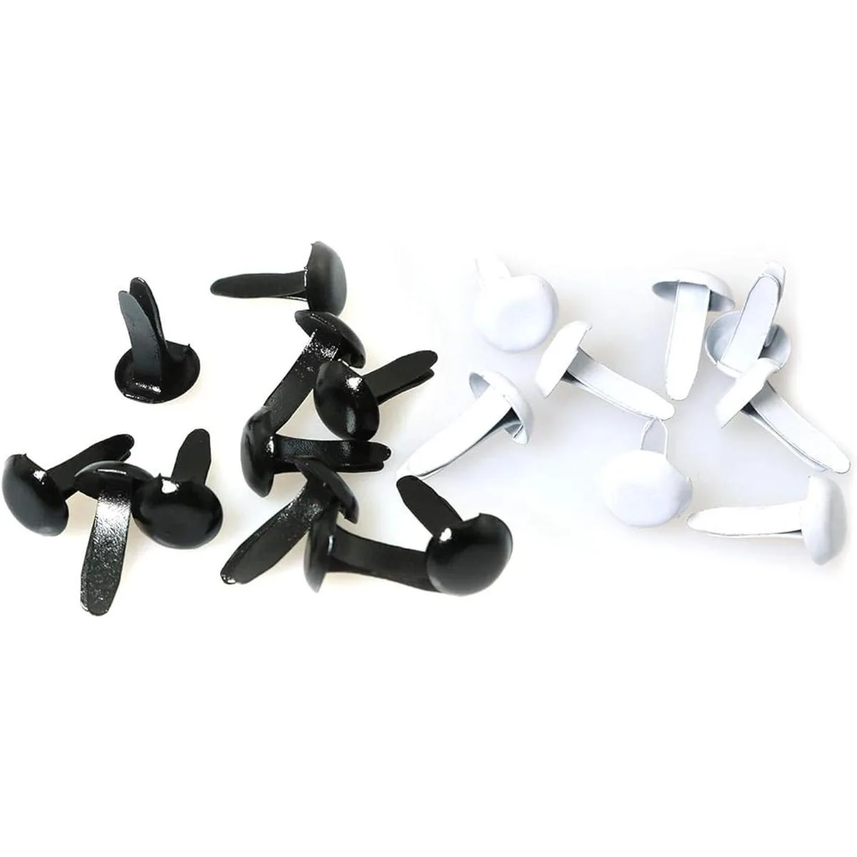 RLECS 200 piezas de mini sujetadores de colores mezclados para hacer tarjetas de scrapbooking, bricolaje, mini sujetadores de hierro redondos para álbumes, tarjetas de felicitación, 0.3 x 0.47 pulgadas 100 piezas negro 100 piezas blanco