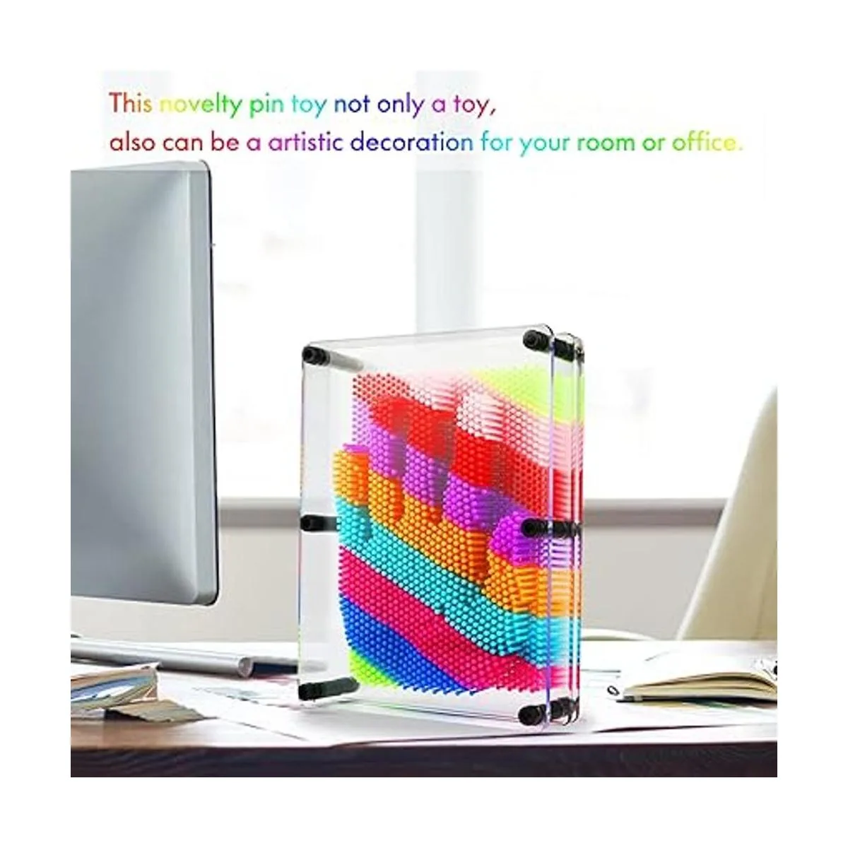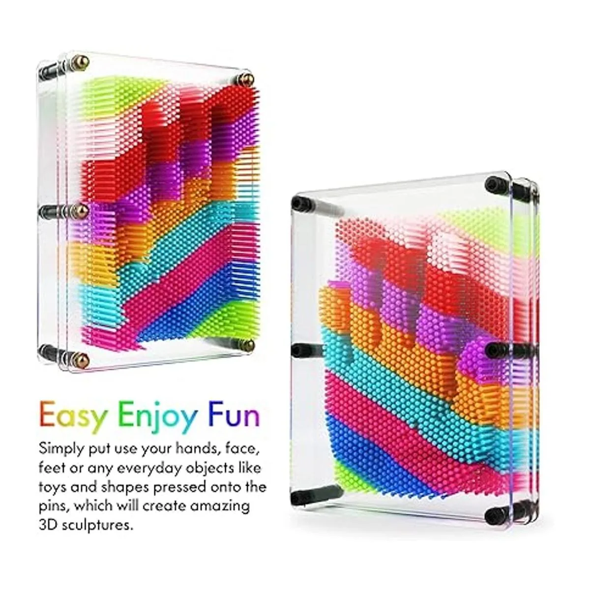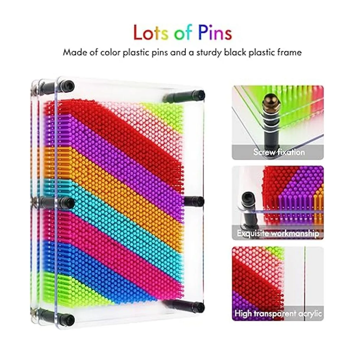 RLINGX Juguete de arte de pin 3D, tamaño grande, 6 x 8 pulgadas, tablero de arte único con pin 3D para niños y adultos arco iris, plástico