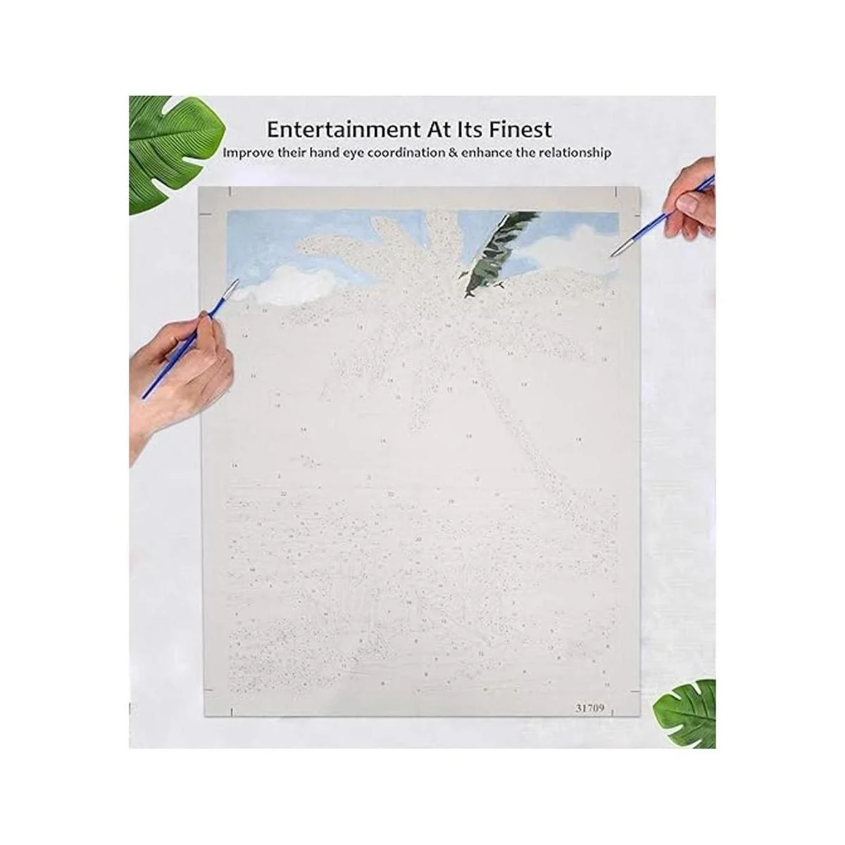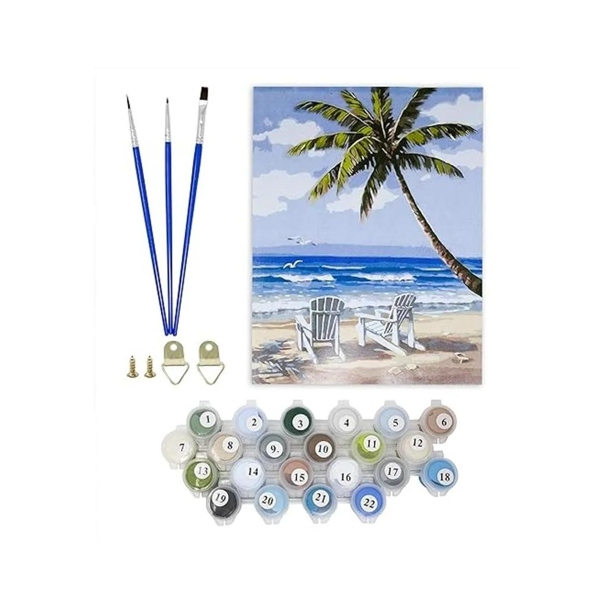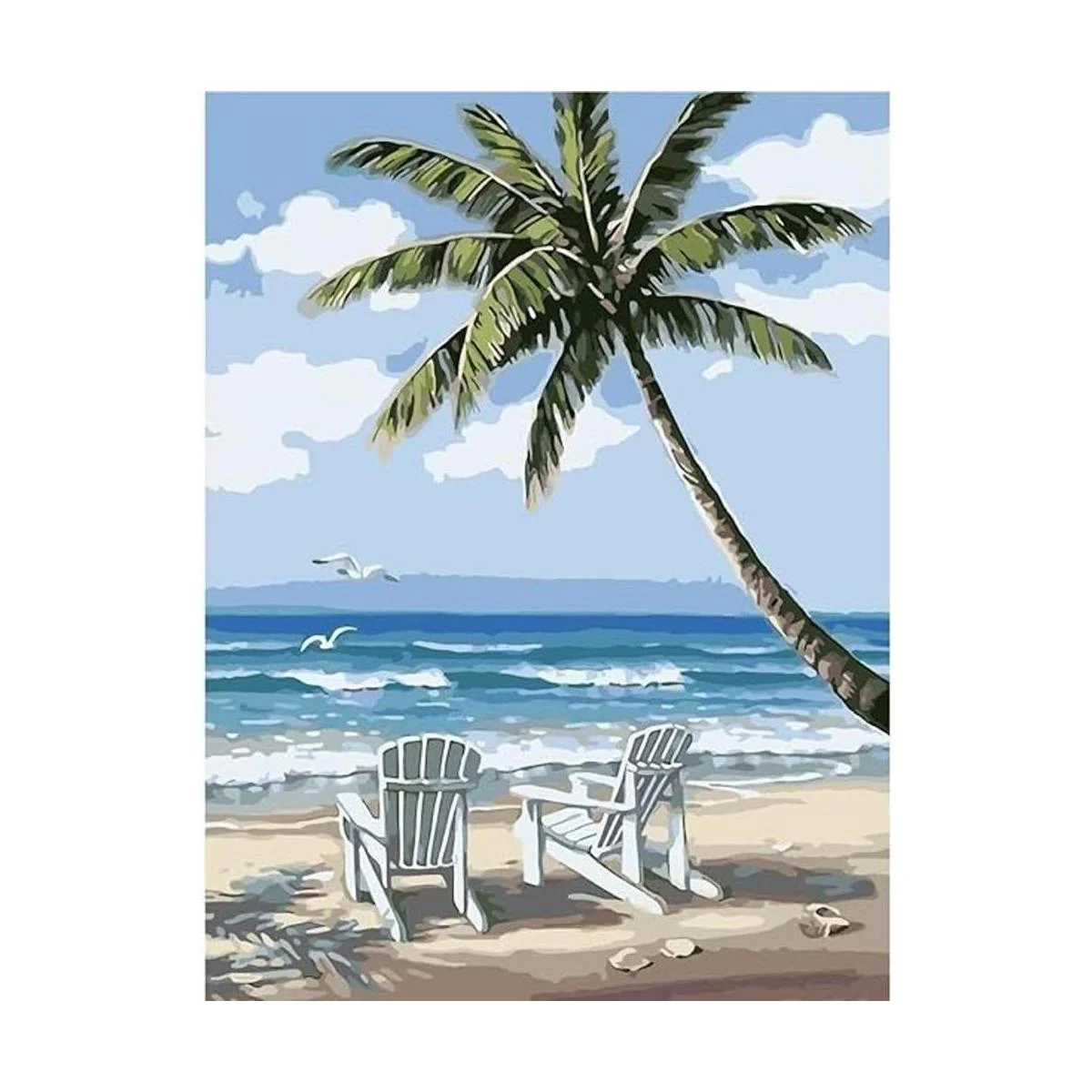RMANA Pintura acrílica por números, paisaje sobre lienzo, arte para principiantes, adultos, estudiantes, adolescentes, niños, pintura por números, manualidades, pintura, numero, abstracto, avanzado, palmera de playa soleada