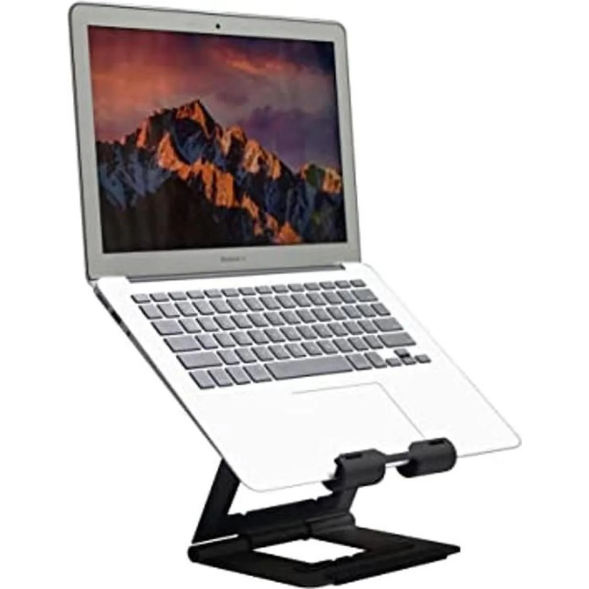 Rmour Soporte portátil para computadora portátil de aluminio para escritorio, accesorios de escritorio para mujeres, ángulo ajustable ilimitado y altura para MacBook Laptop para accesorios de oficina en casa negro