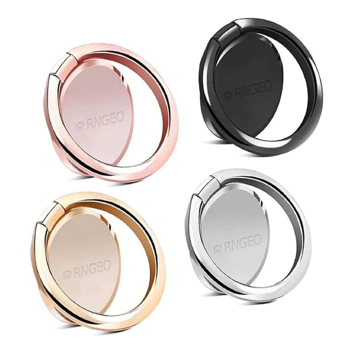 Rngeo Juego de 4 soportes de anillo para dedos, universales delgados y de rotación de 360 grados, compatibles con iPhone, Android y otros teléfonos inteligentes 4 paquetes de oro rosa, dorado, gris, plateado y negro