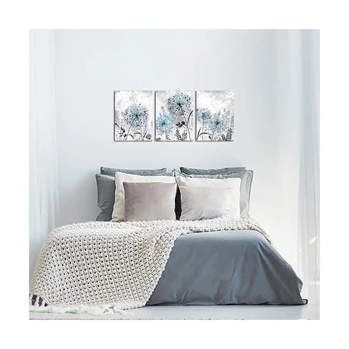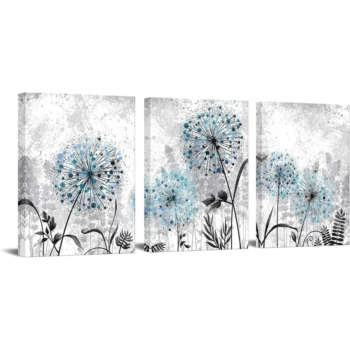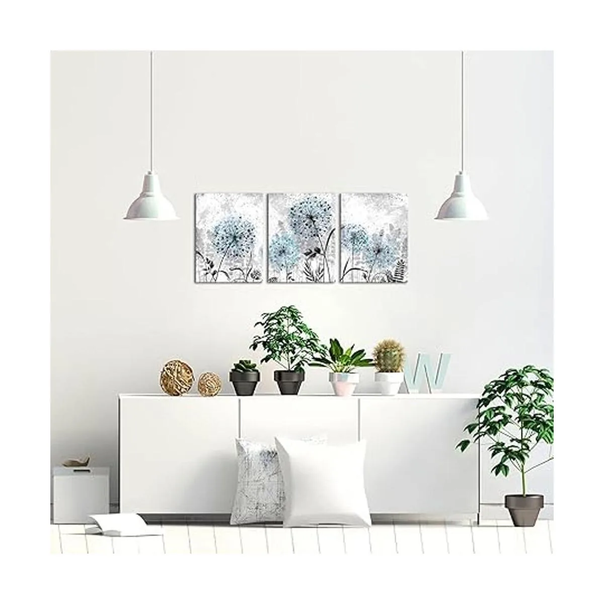 RnnJoile Juego de 3 piezas de arte para pared de diente de león azul, 12.0 x 16.0 in