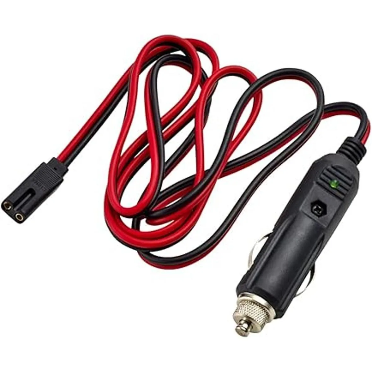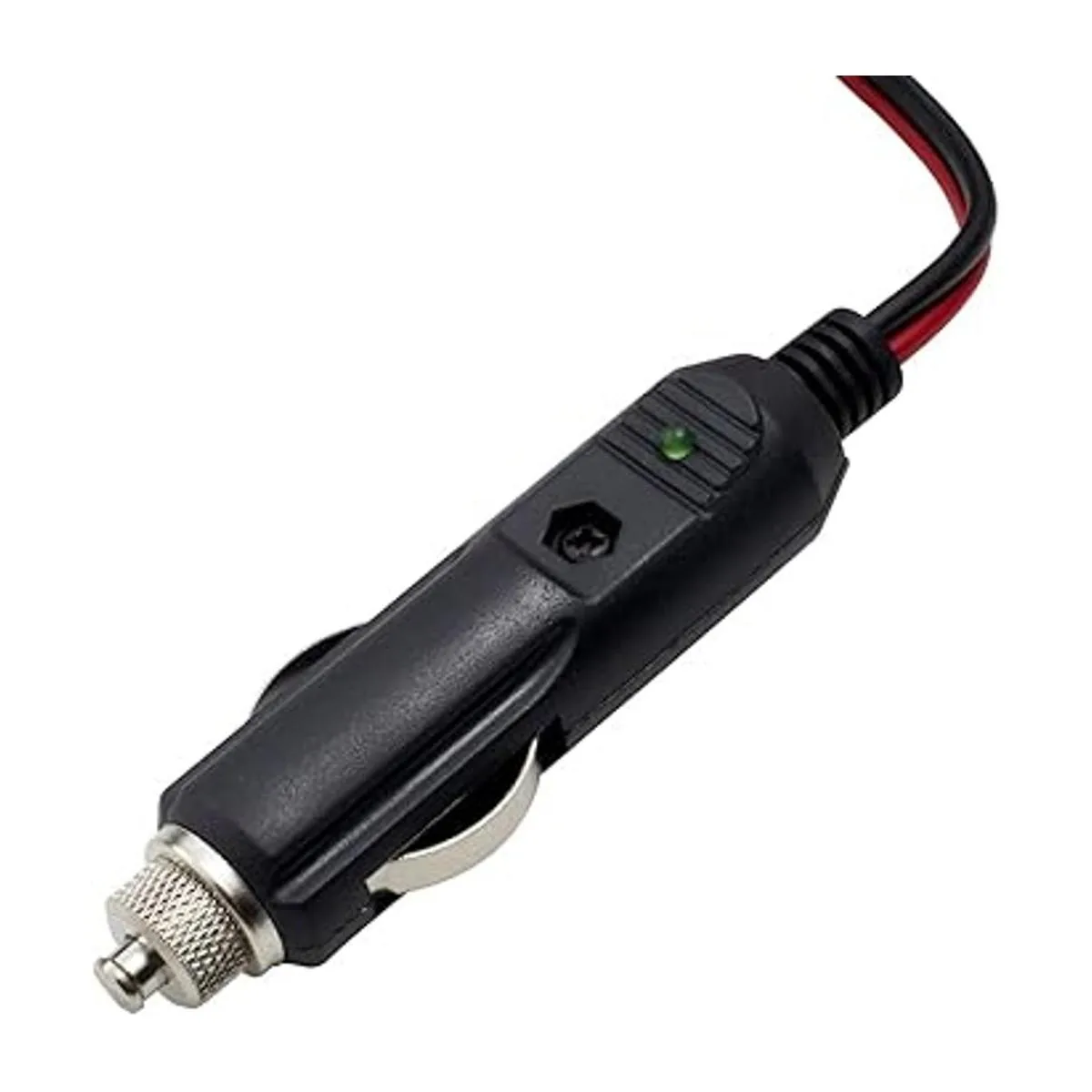 Conector de mechero de fusible integrado con indicador LED verde y agarre para dedos.