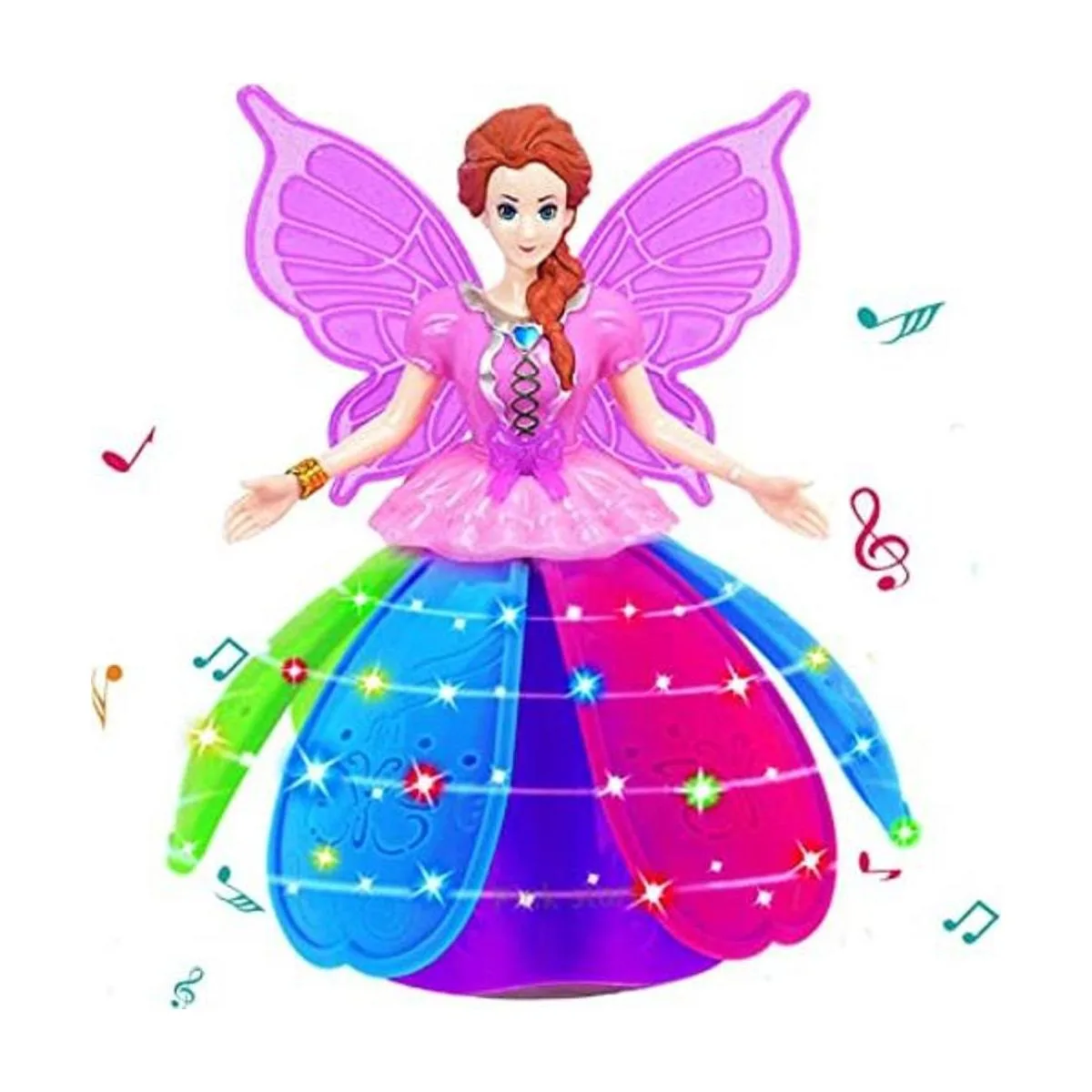 Robot de baile para niñas Girar Paseo Eléctrico Princesa Muñecas Proyección LED Mariposa Alas Hadas Caja de Música Chica Festival Regalo de Cumpleaños