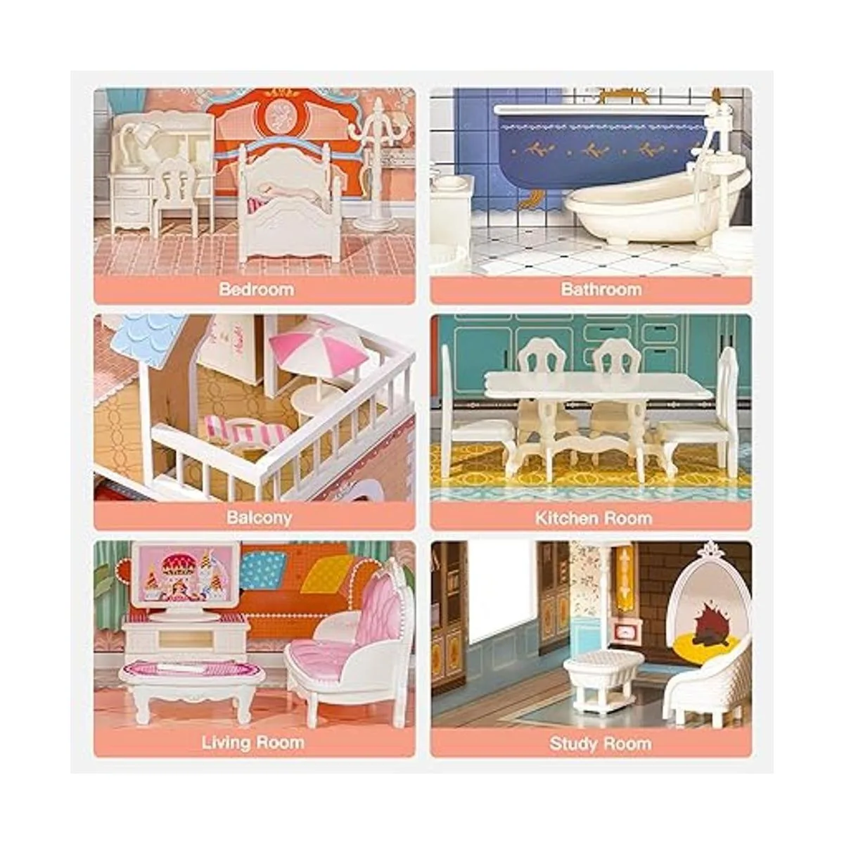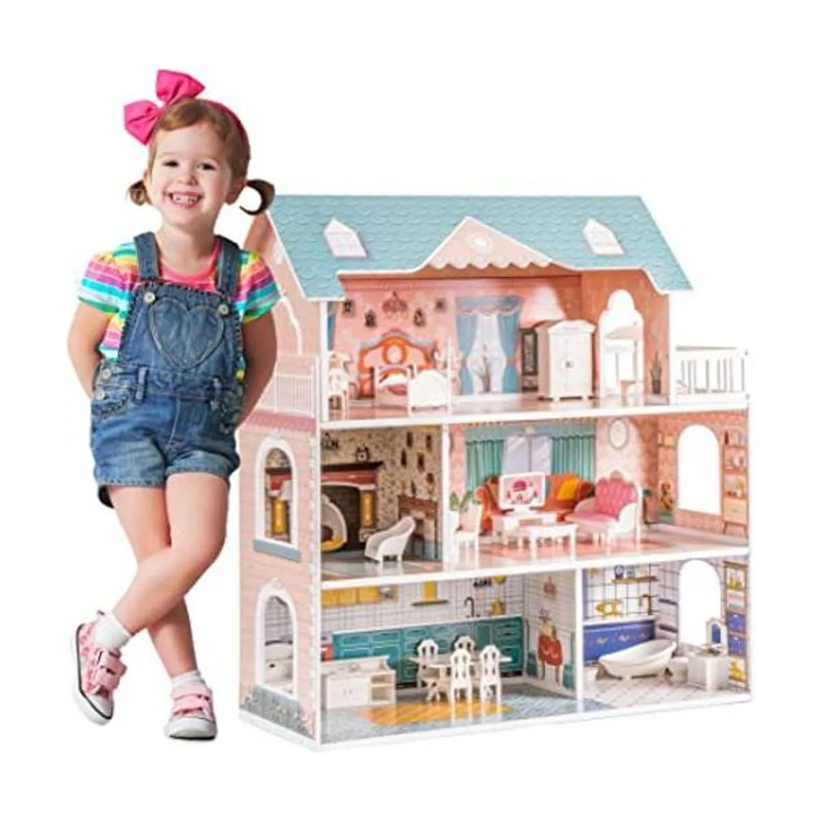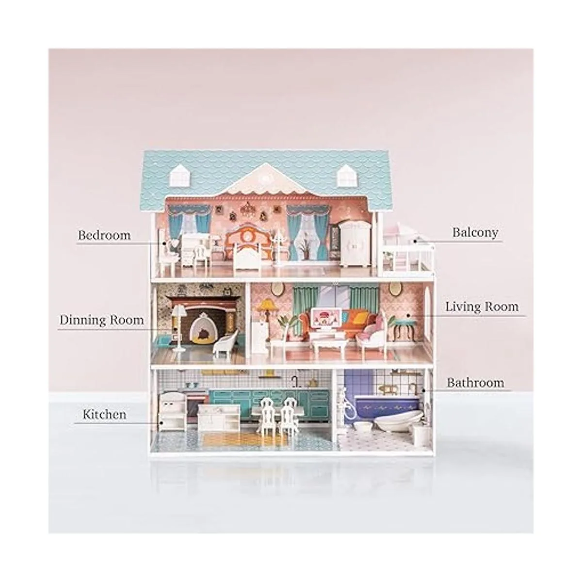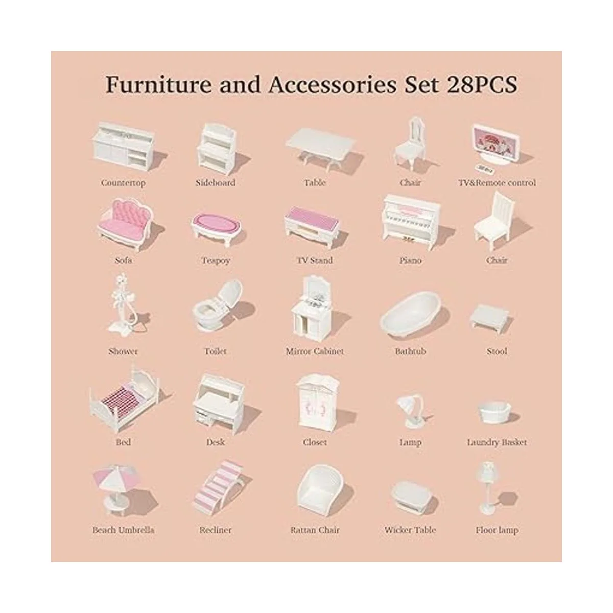 ROBOTIME Casa de muñecas de madera para niños de 3, 4, 5, 6 años, casa de ensueño con 28 piezas de plástico para muebles, para muñecas de 3.3 pulgadas, regalos de cumpleaños para niños pequeños de 3 años