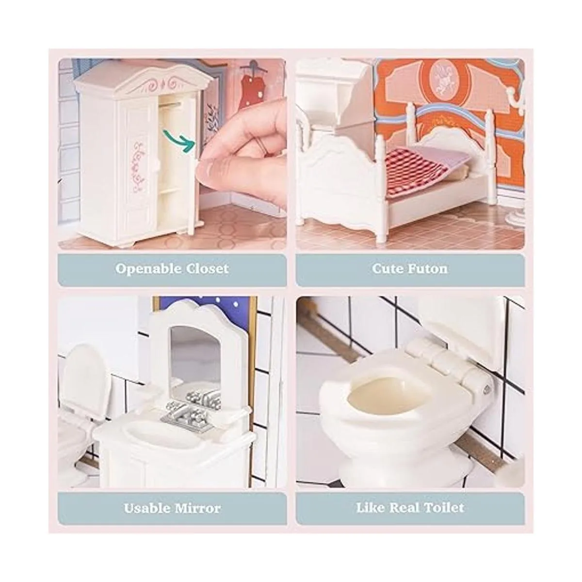 Exquisita casa de muñecas: altamente realista, meticulosamente decorada. La casa de muñecas ROBOTIME tiene 28 accesorios realistas: sofá de sala de estar, lámpara, mesa de cocina, sillas, bañera, reclinable, inodoro, cama, etc. Las puertas y cajones del armario se pueden abrir, el espejo también se puede utilizar.