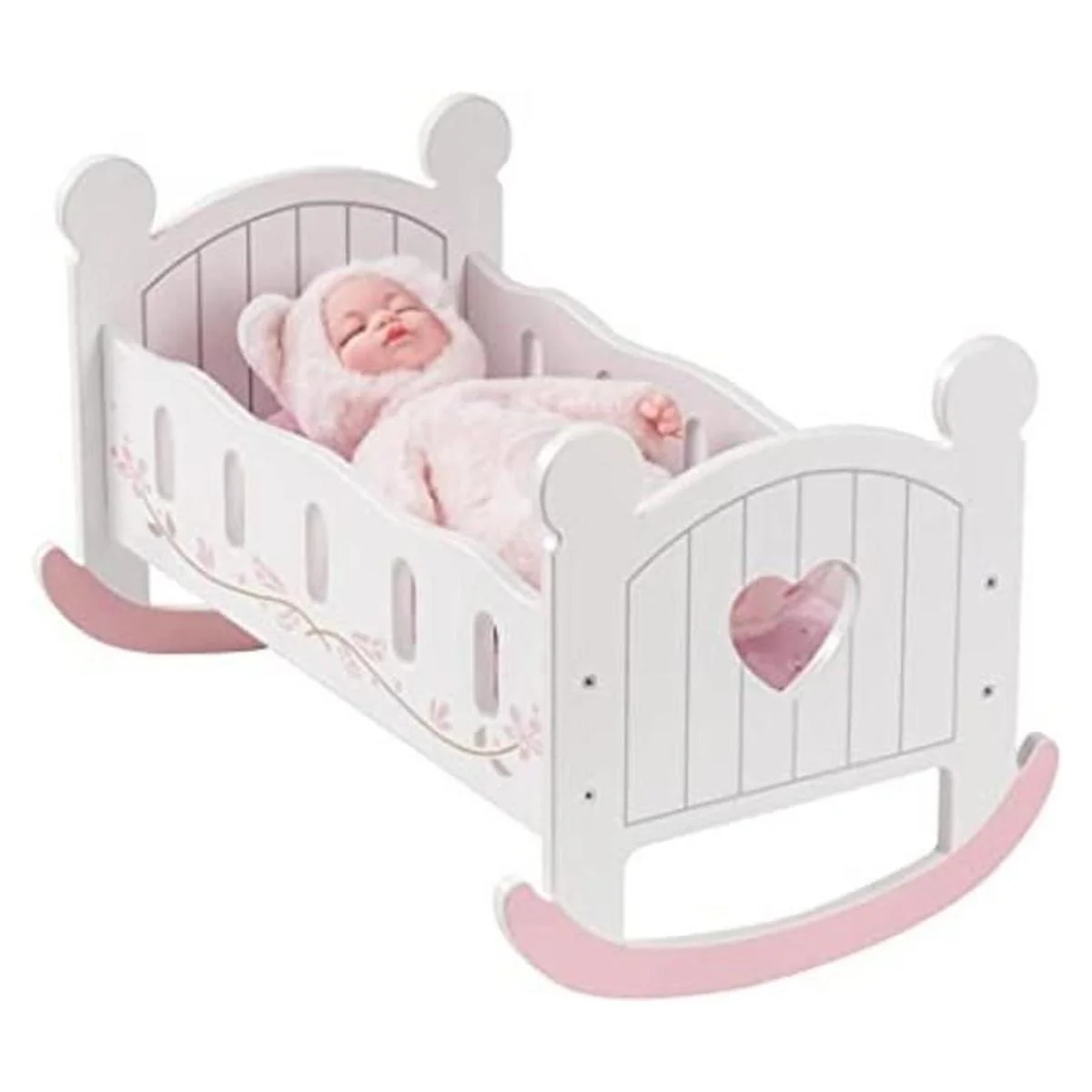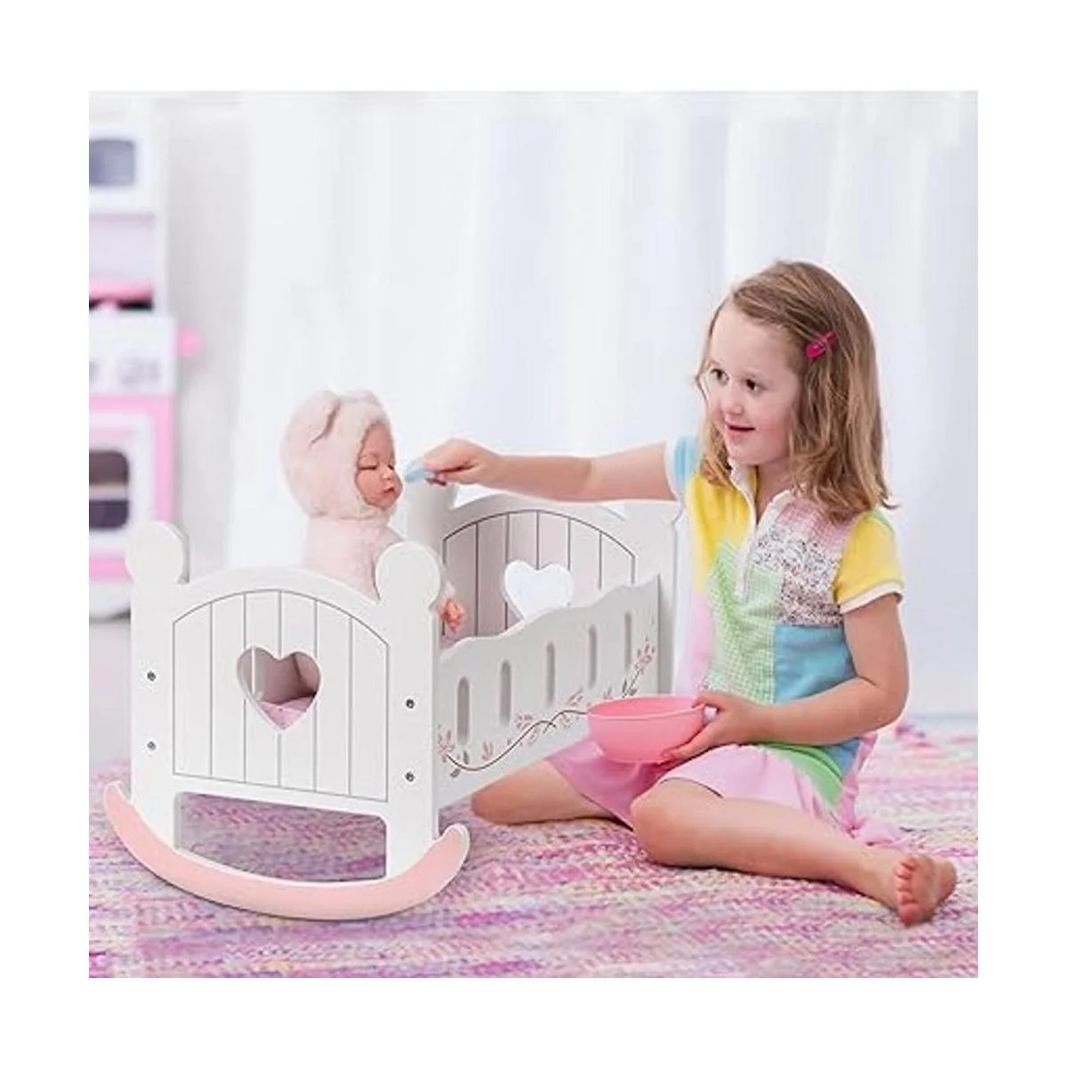 ROBOTIME Cuna de muñeca de madera, cuna mecedora, cama de muñeca reversible para muñecas y niñas, se adapta a muñecas de hasta 18 pulgadas blanco