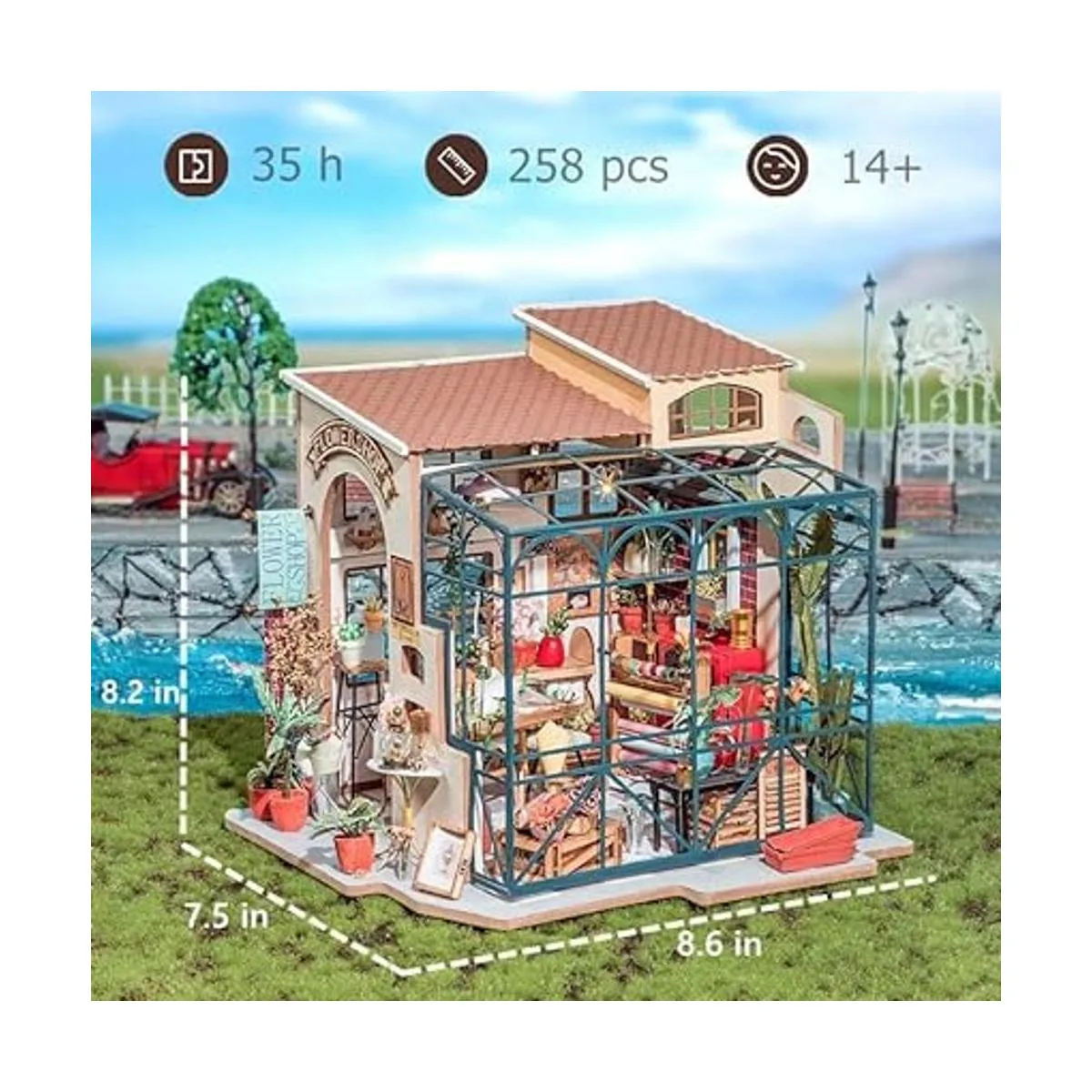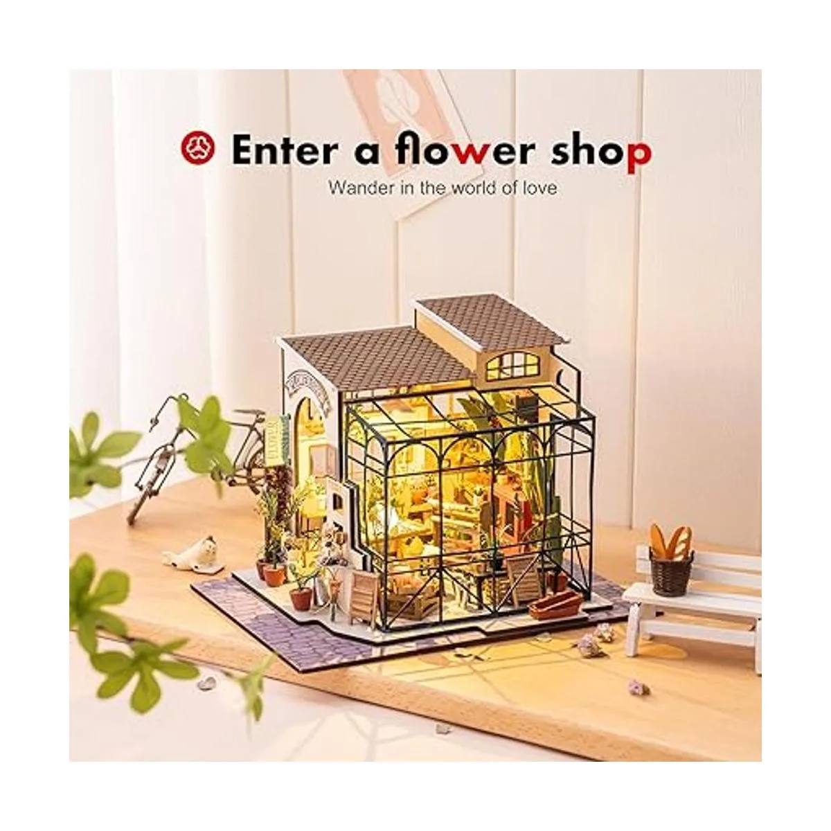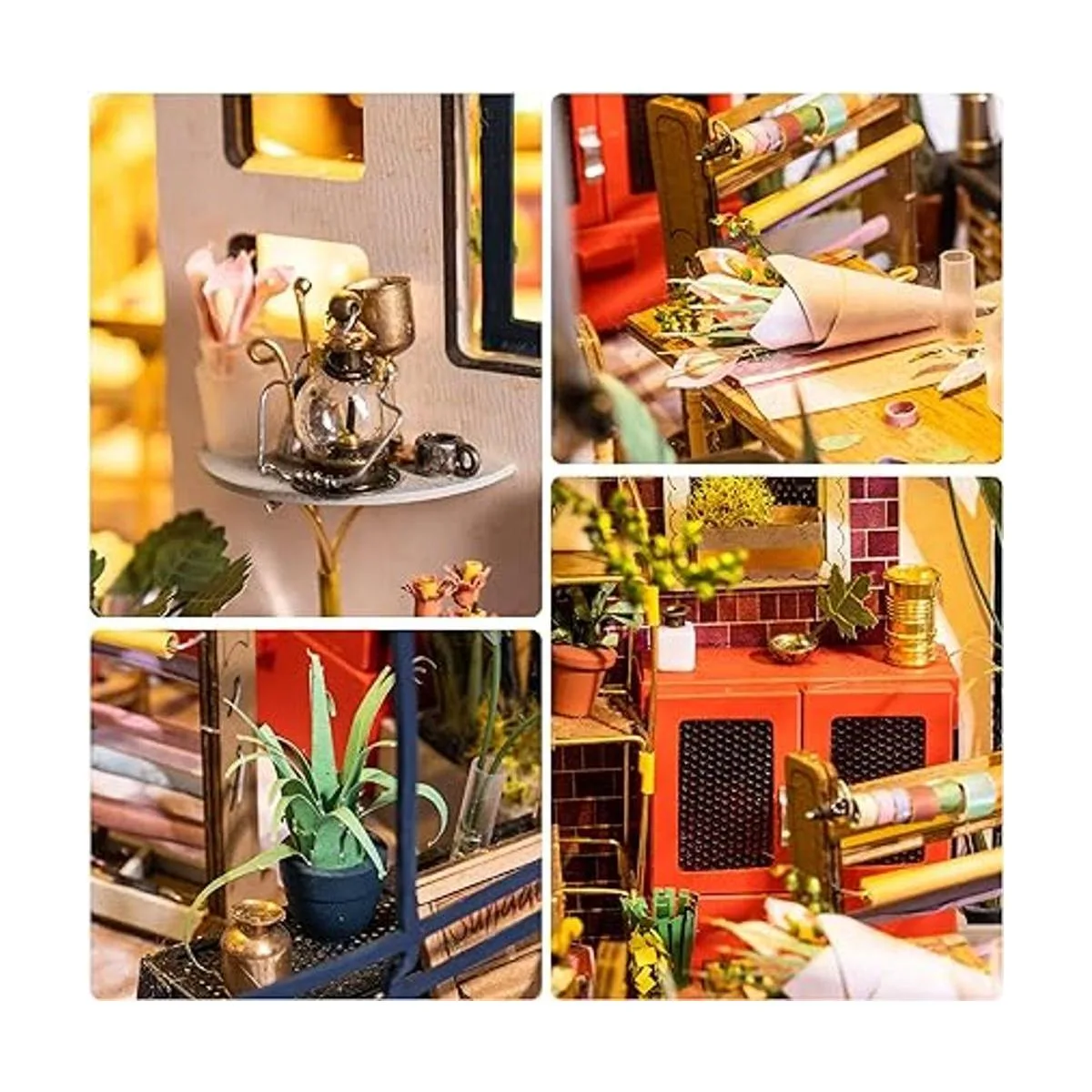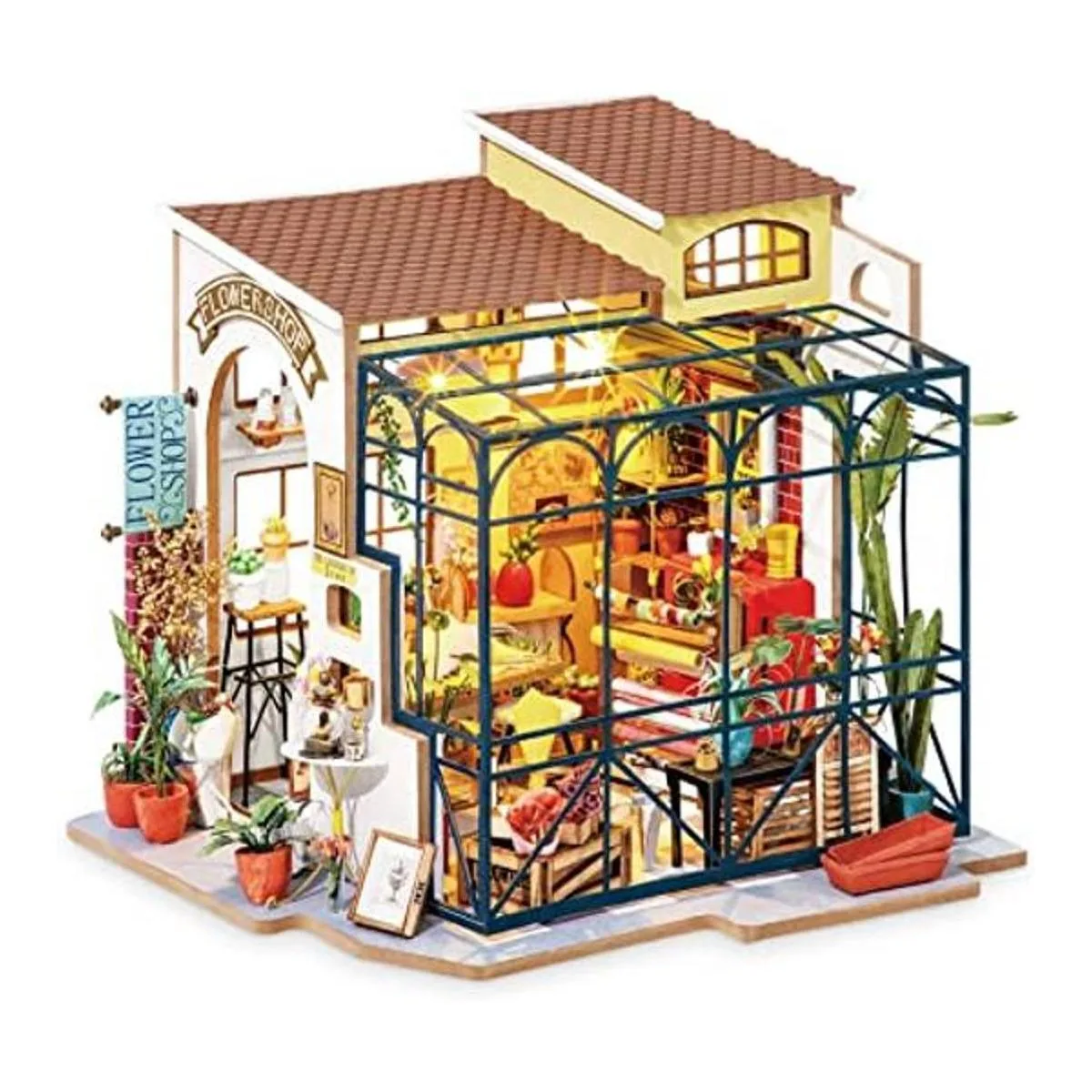 ROBOTIME Kit de casa de muñecas en miniatura para manualidades con accesorios de muebles, escala 124, diseño de tienda de flores de Emily