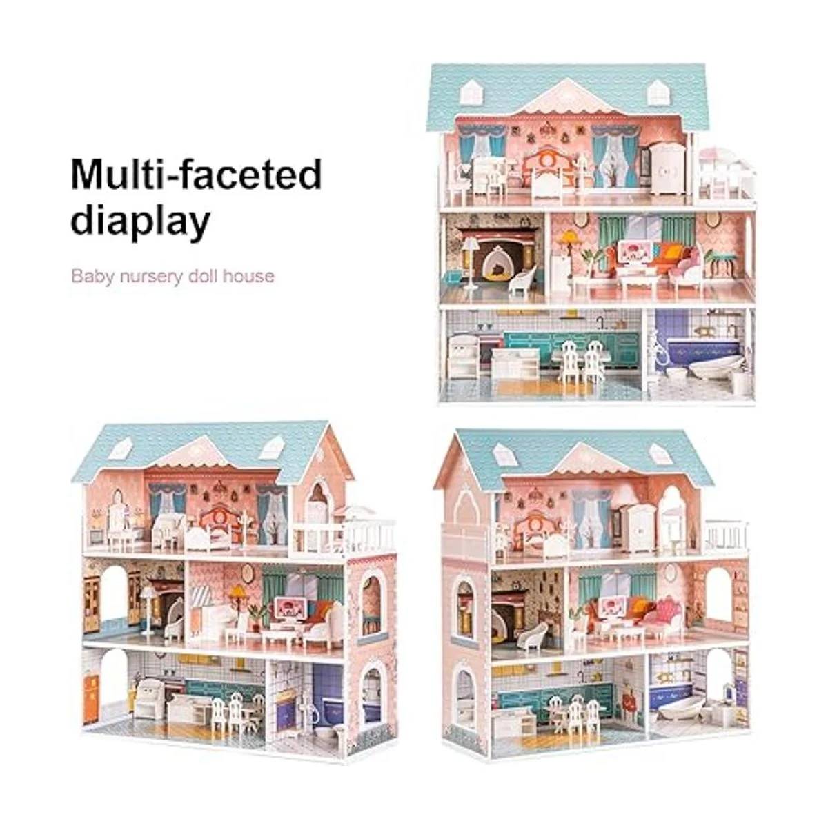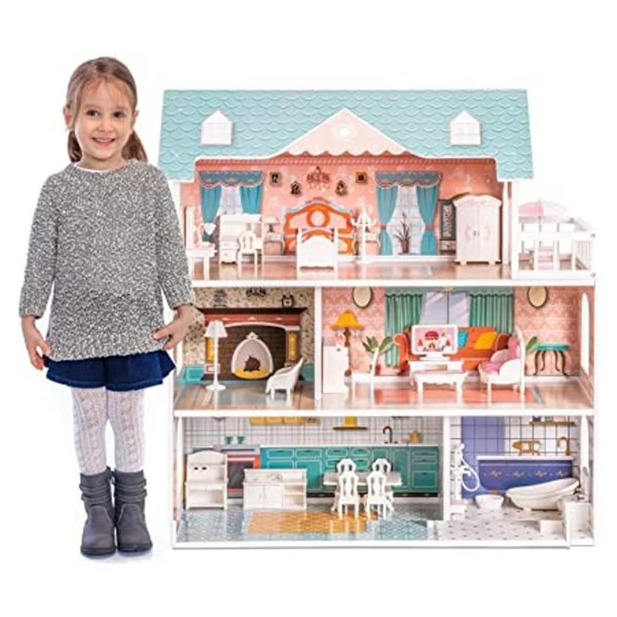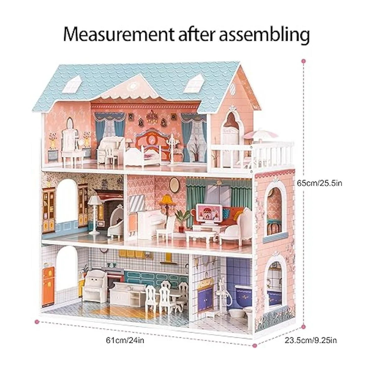 Hermosa casa de princesas: la casa de muñecas Robud viene con muebles de madera maciza, resistentes y duraderos, múltiples habitaciones y 3 niveles que hacen que la casa sea muy atractiva para los niños.