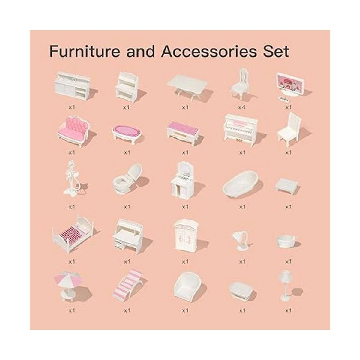 Fomenta la imaginación creativa: es una casa de muñecas de ensueño para una niña. Moverá constantemente los muebles para crear un diseño de interior diferente y pretender que es su entorno de vida real.