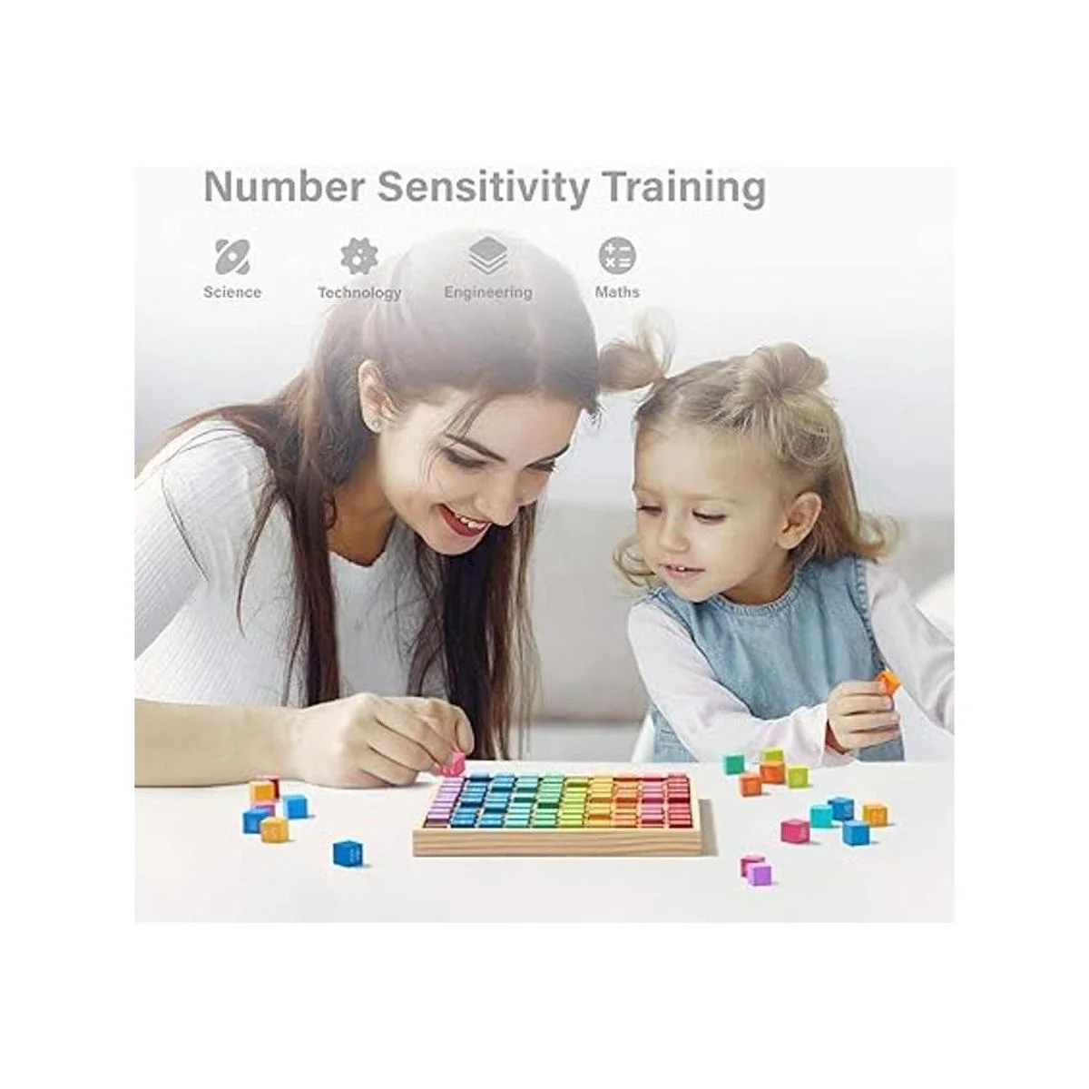 ROBUD Juego de mesa de multiplicación de madera y matemáticas, juguetes de aprendizaje Montessori para niños de 3 años en adelante, 100 bloques de conteo de madera