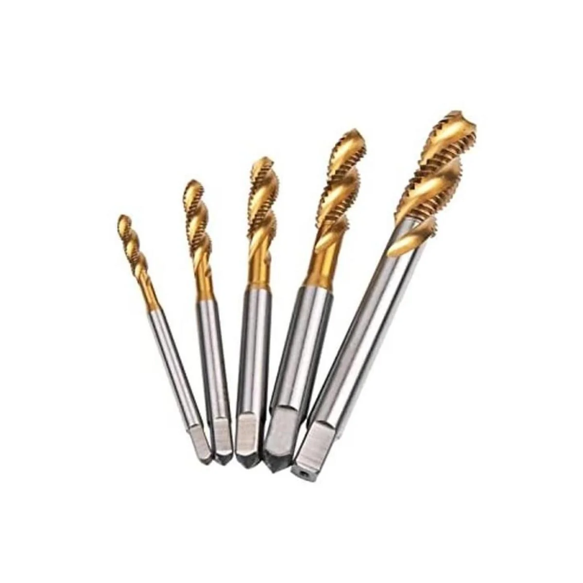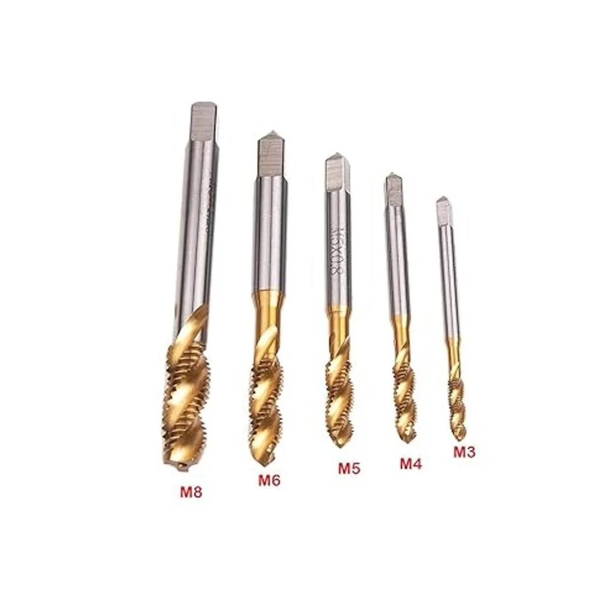 Rocaris 5 piezas M3 M4 M5 M6 M8 titanio recubierto HSS espiral flauta métricas juego