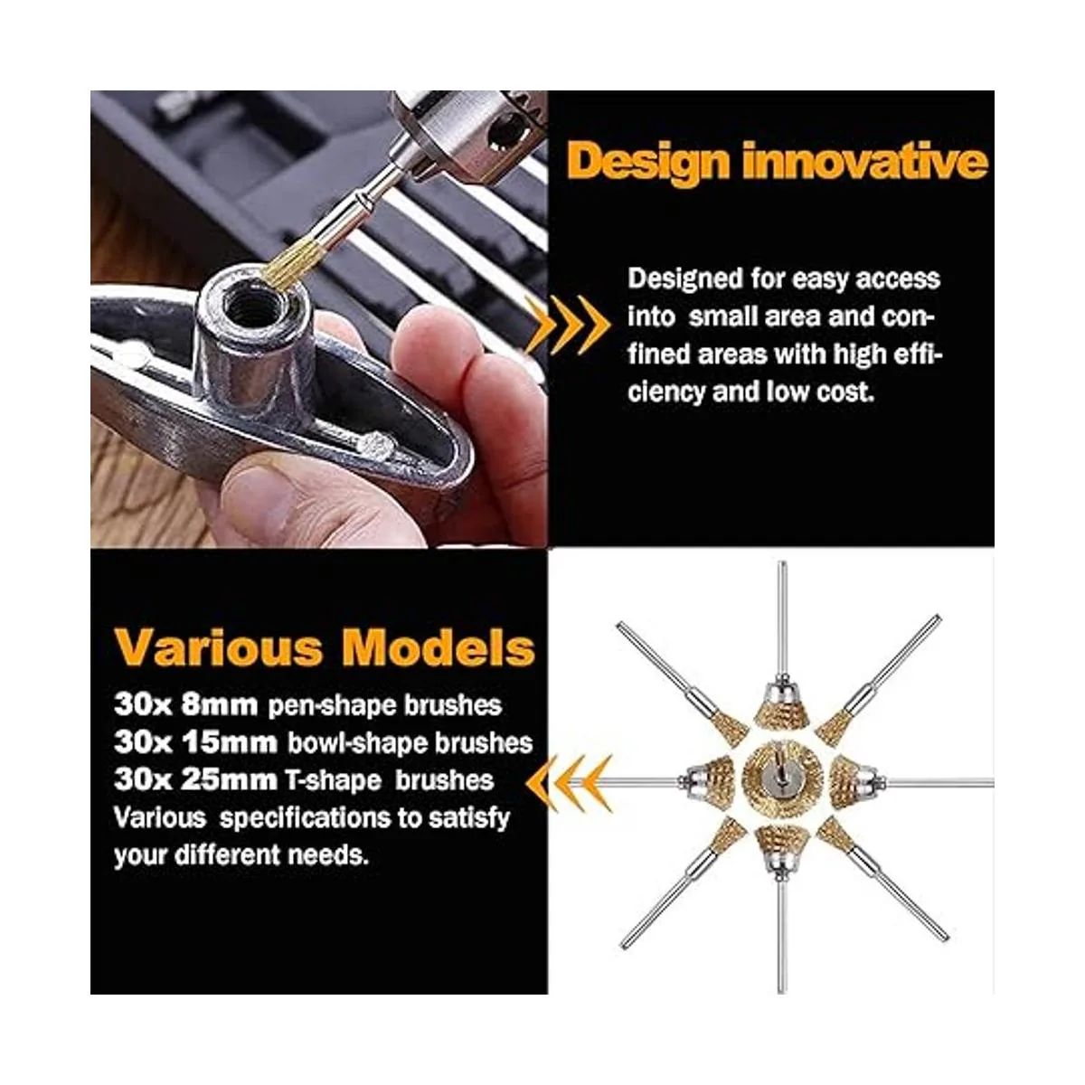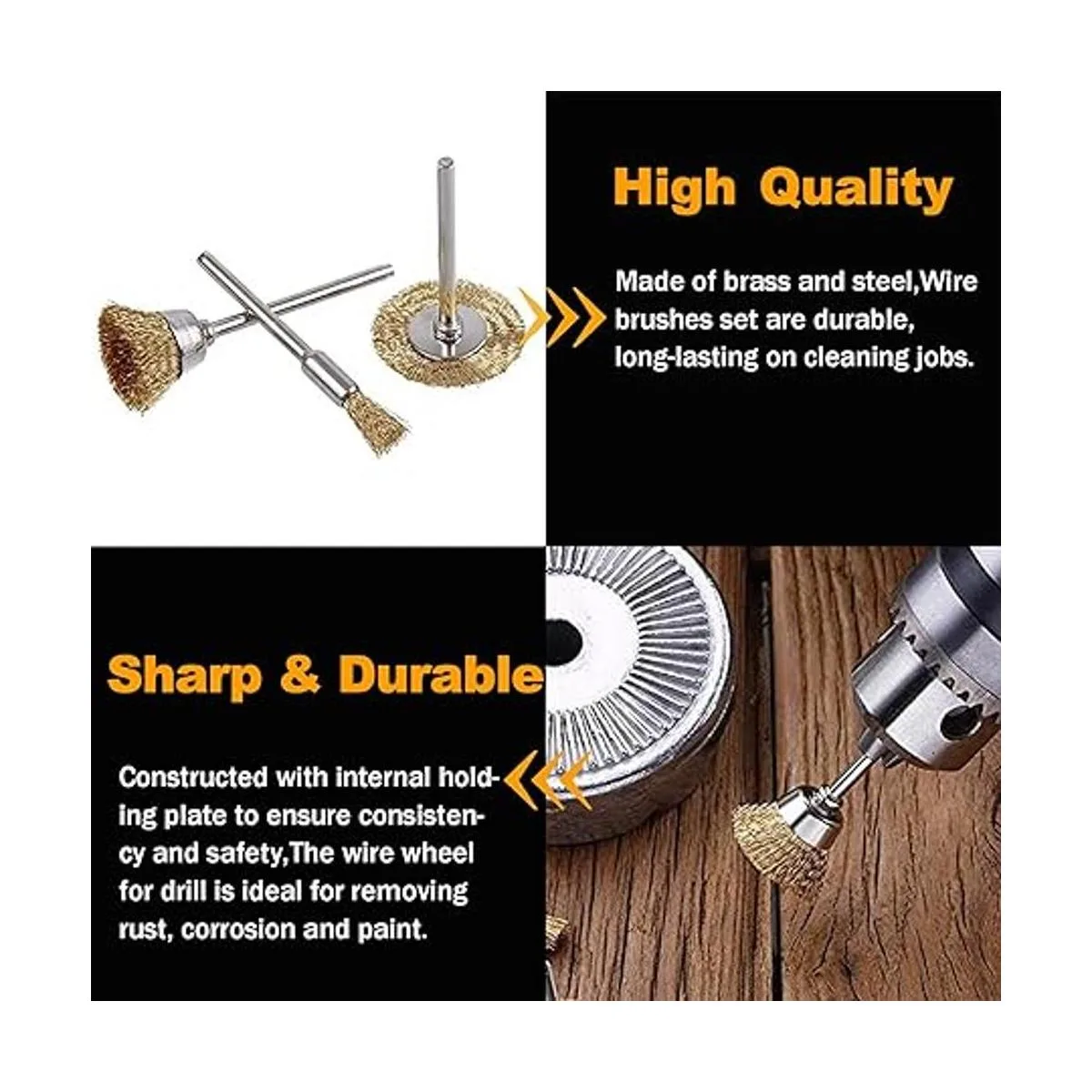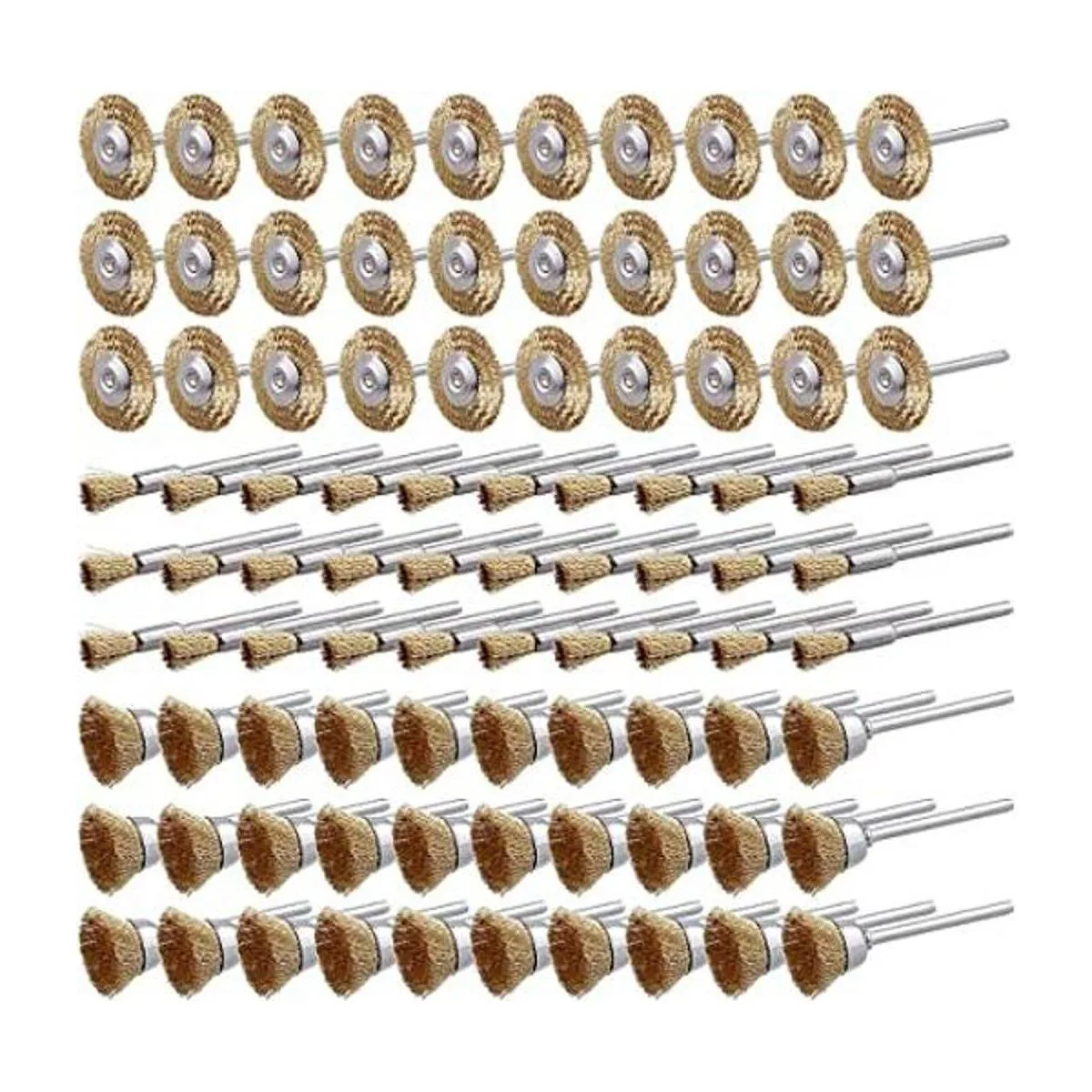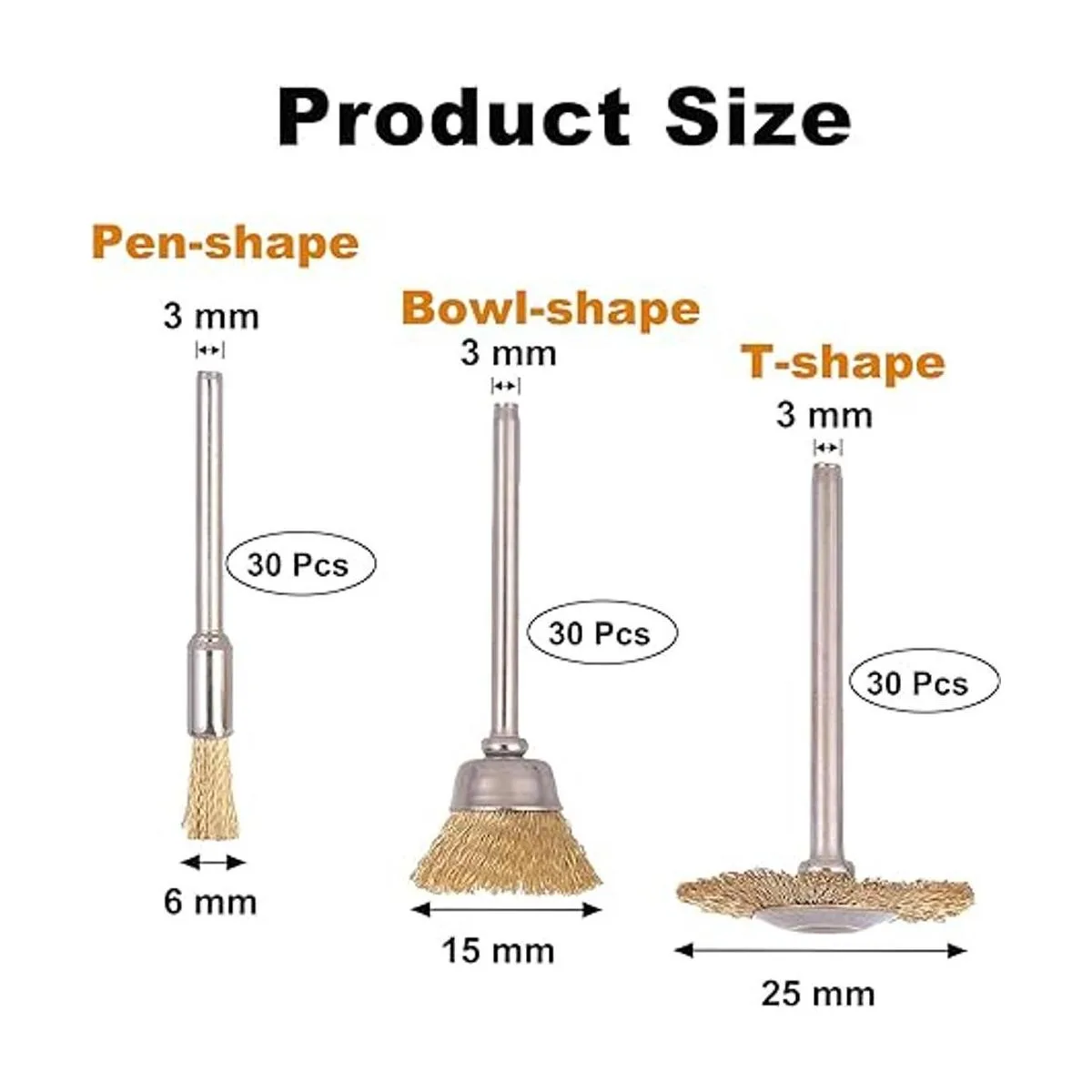 Rocaris Juego de 90 cepillos de alambre, ruedas de alambre de latón para bolígrafo, kit de cepillos para herramientas rotativas