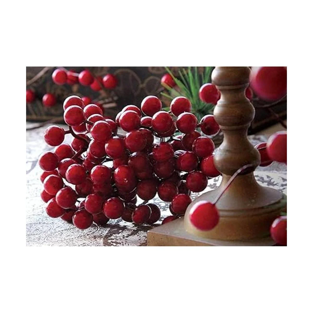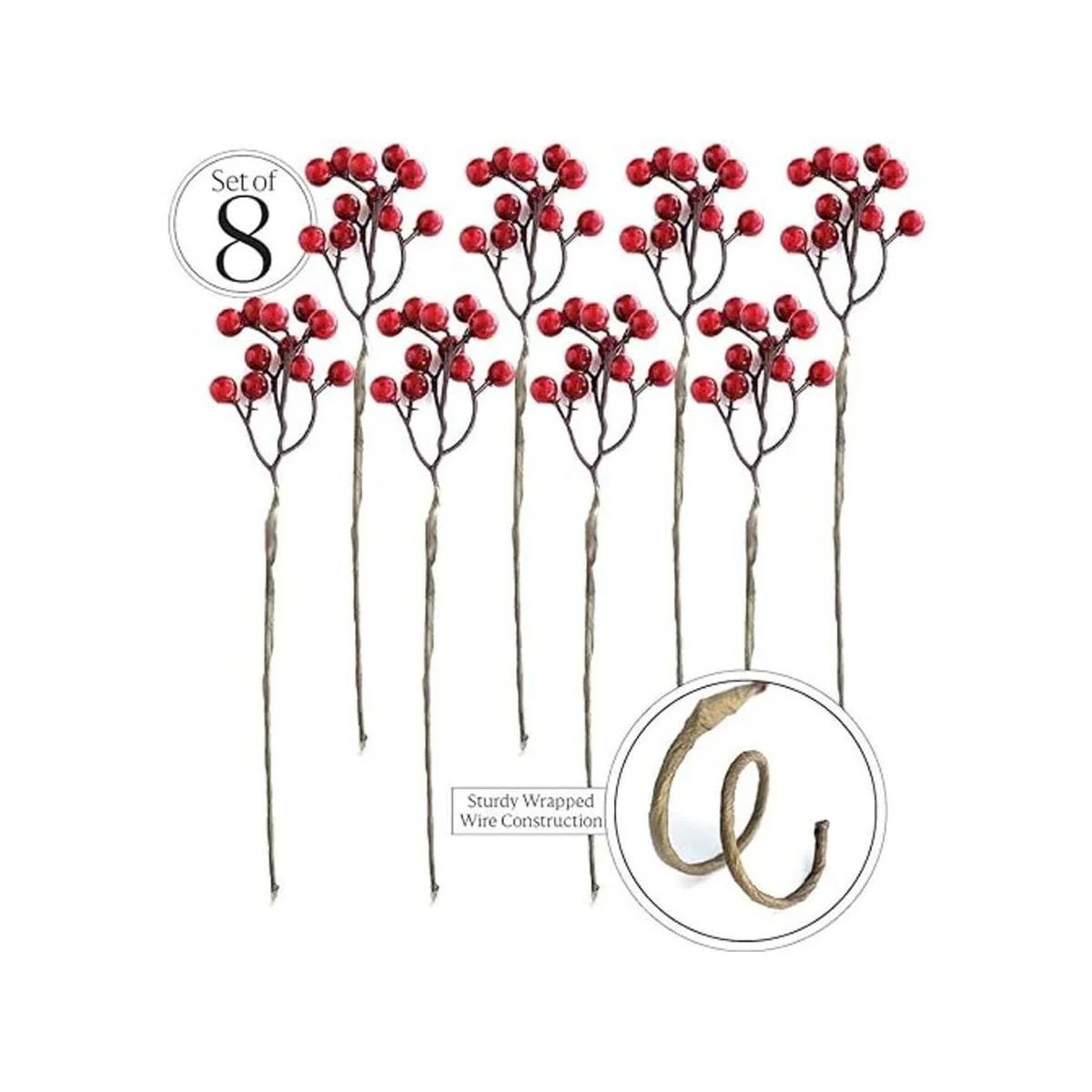 Baya de invierno: tallos de bayas artificiales rojas de Navidad Púas florales de invierno para aspecto rústico y rústico Ideal para adornos hechos a mano y decoraciones de árbol de vacaciones. Longitud del tallo: 7.3 pulgadas de largo/alto con más de 100 bayas individuales en juego de 8 est. Diámetro: 0.40.8 pulgadas