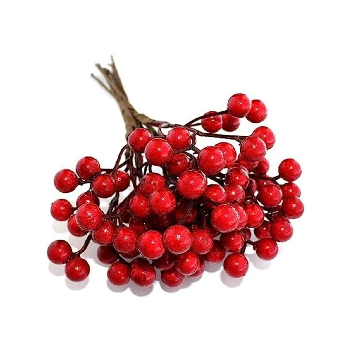Rocío de tallos de bayas artificiales de tubería roja para manualidades de bricolaje, corona, guirnalda, adornos de Navidad, púas florales decorativas de invierno para decoraciones de manualidades, decoración navideña del hogar