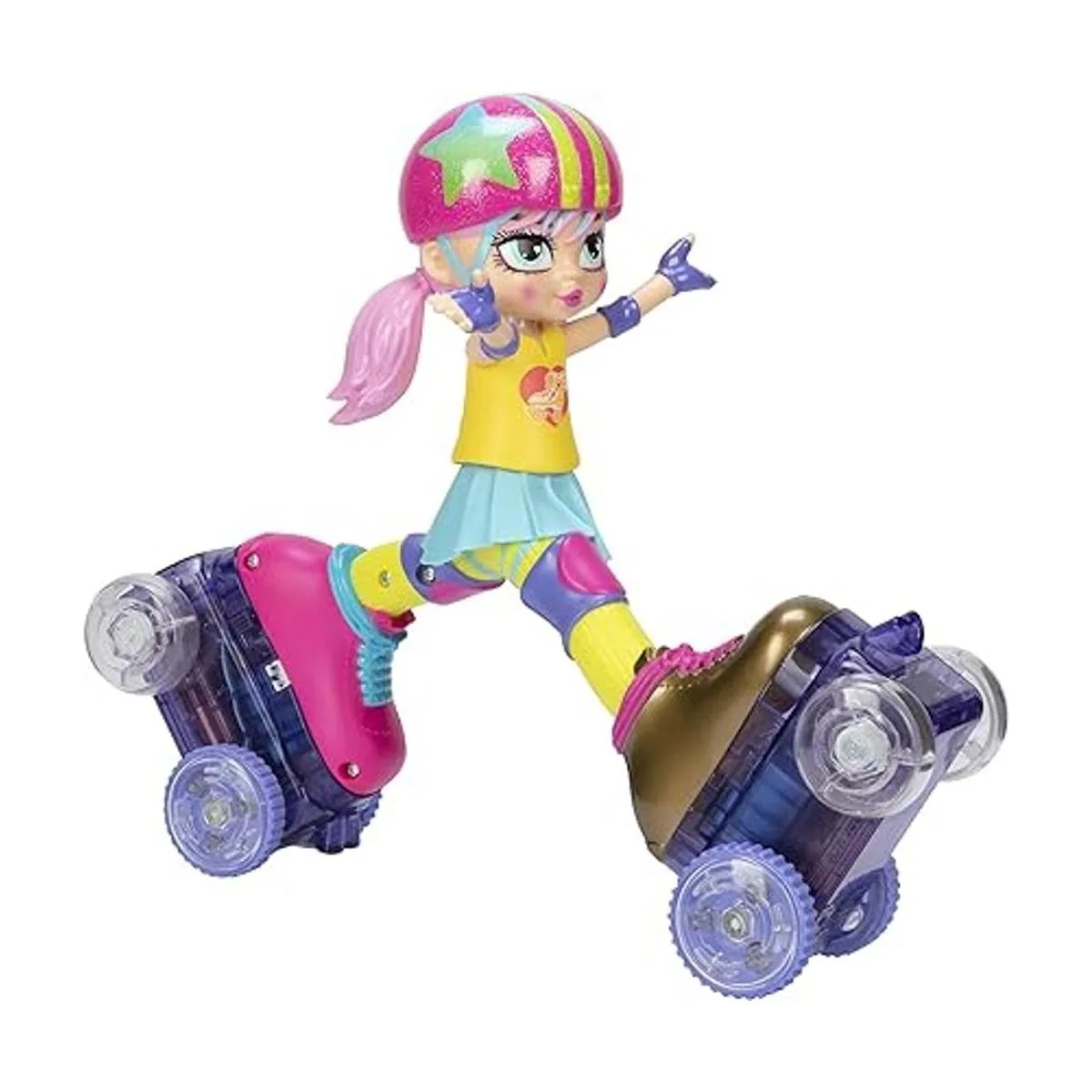 Las ruedas en los patines de la muñeca se iluminan en diferentes colores cuando se mueven para mayor emoción