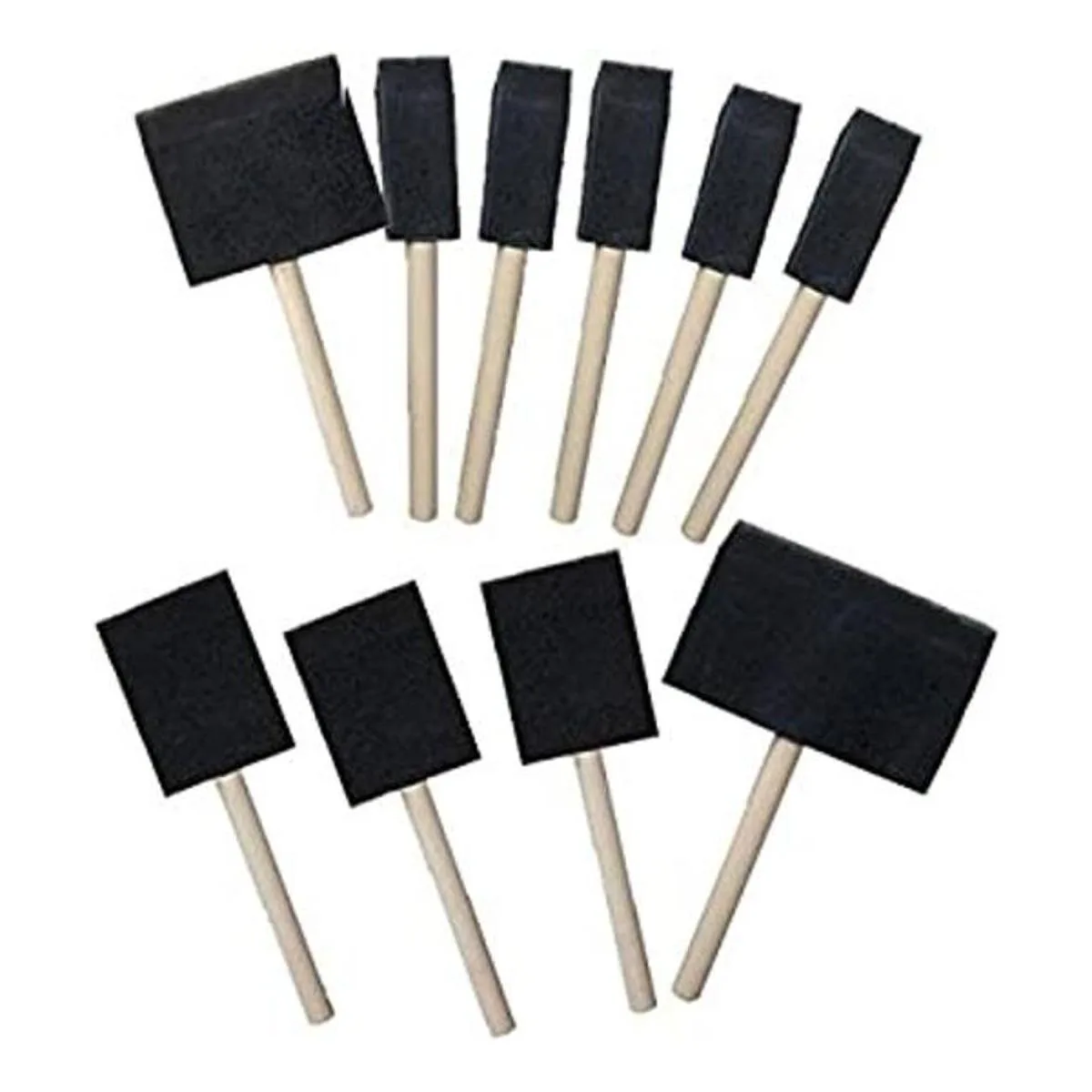 Rock Ridge Tools Juego de pinceles de espuma con mango de madera 10 unidades, 10 unidades, ligero, duradero y ideal para acrílicos, manchas, barnizes, manualidades y proyectos de arte para niños y adultos