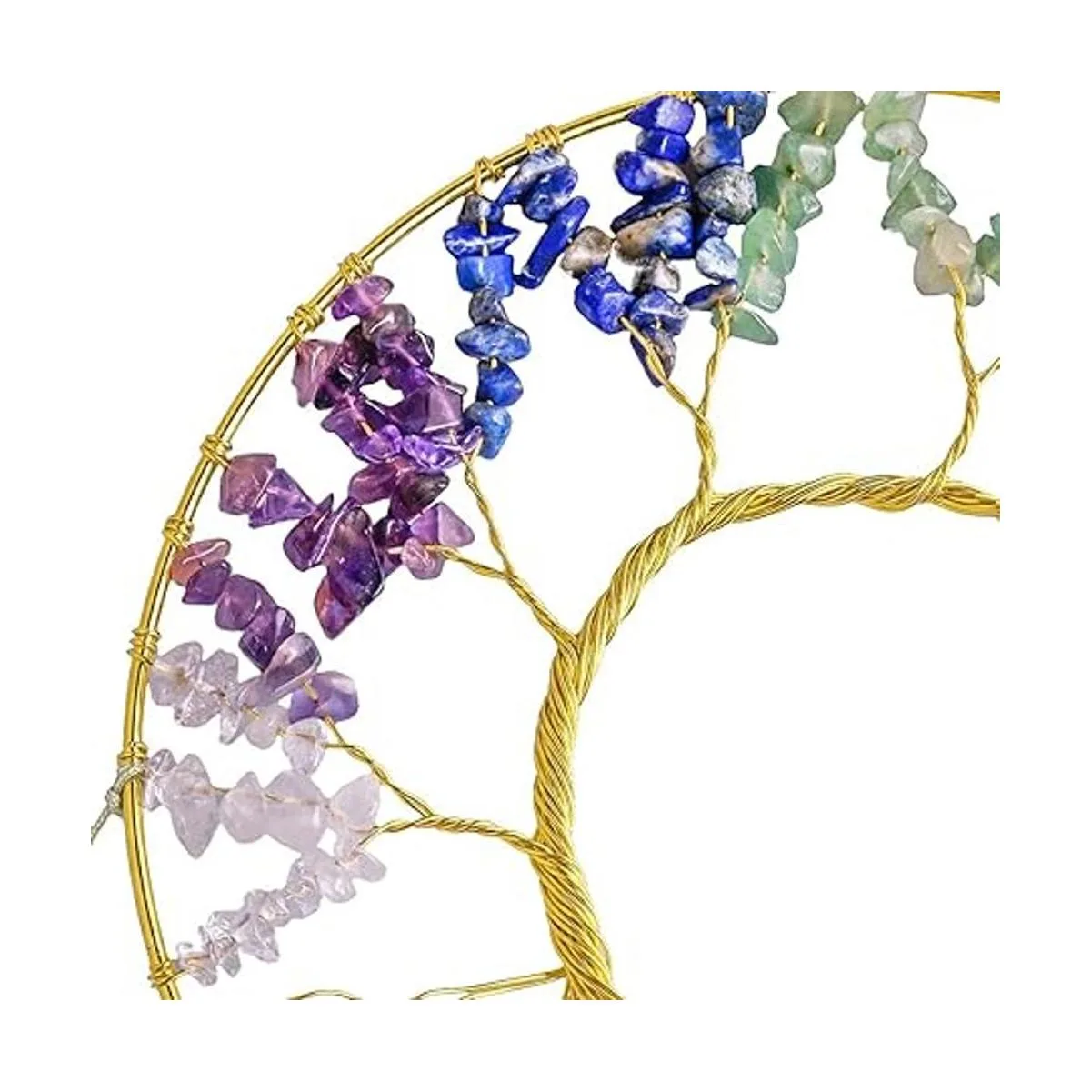 Rockcloud Colgador de pared con cristales de curación, árbol de la vida, rodajas de ágata, meditación, adorno para ventana, decoración del hogar, multicolor