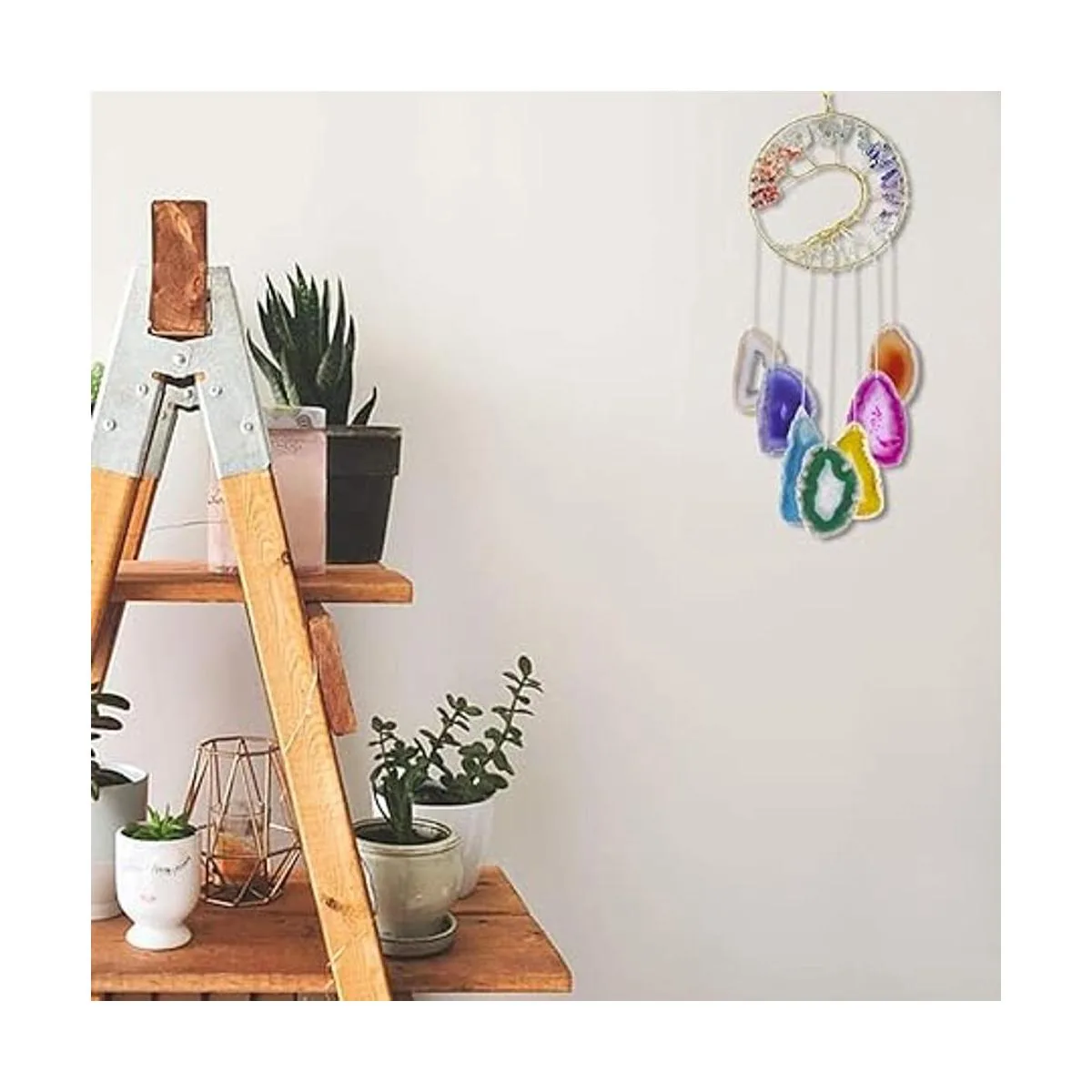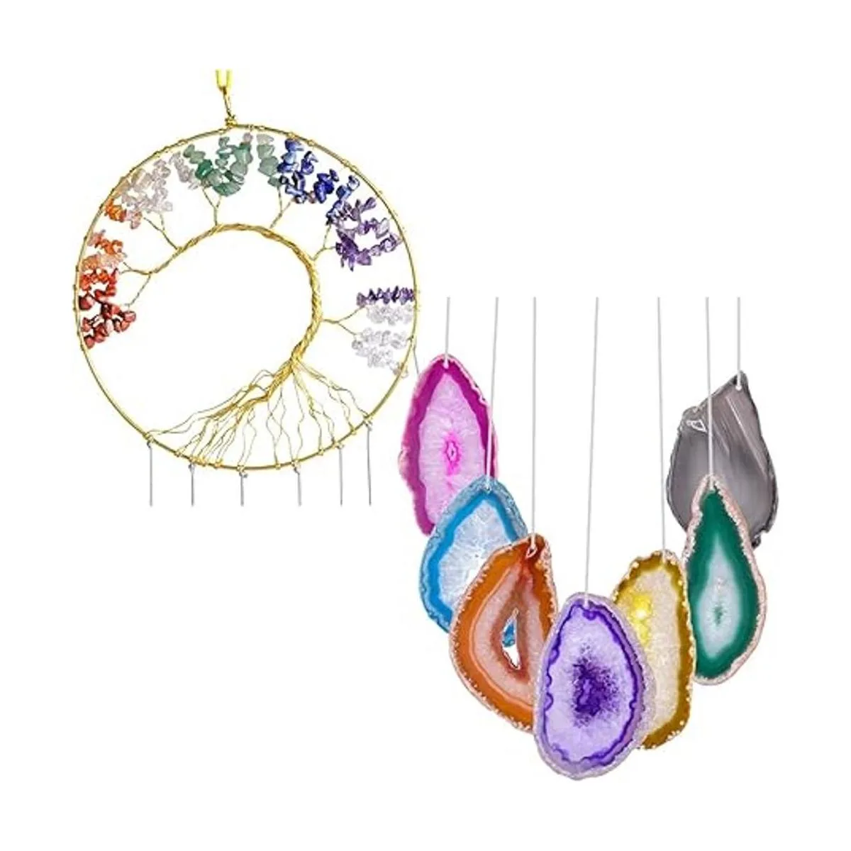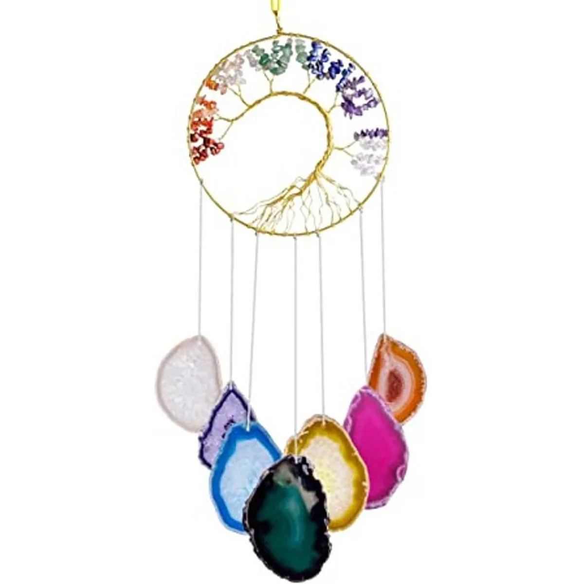 Material: colgante de cristal curativo, hecho a mano de coloridos colgantes de rodajas de ágata y árbol de la vida envuelto en alambre.