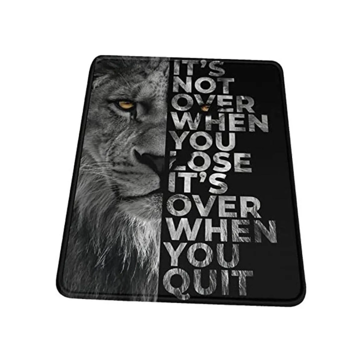 Rockcon Alfombrilla de mouse con retrato de cabeza de león blanco y negro, cita positiva, no terminó cuando pierdes cuando te dejas a la moda, base de goma antideslizante para juegos para oficina y hogar, 10 x 12 pulgadas