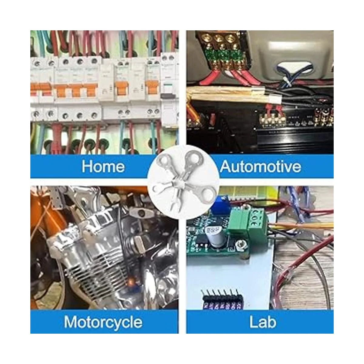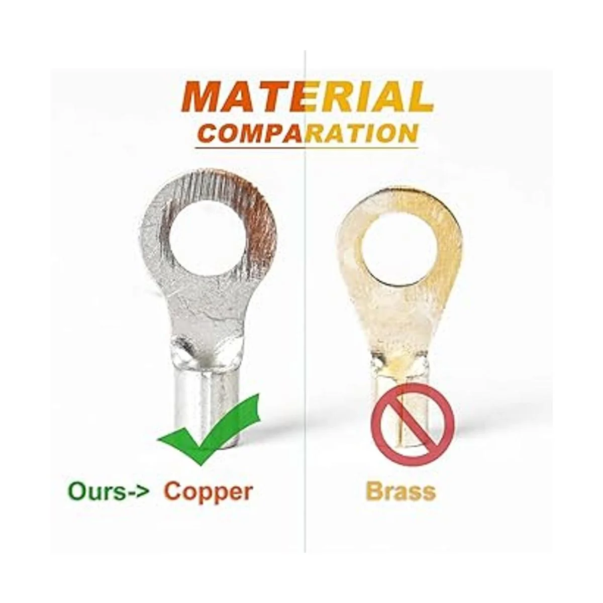 Material: los terminales de anillo/horquilla no aislados están hechos de 99,9 cobre puro, el chapado en estaño ayuda a resistir la corrosión y también hace que sean fáciles de soldar.