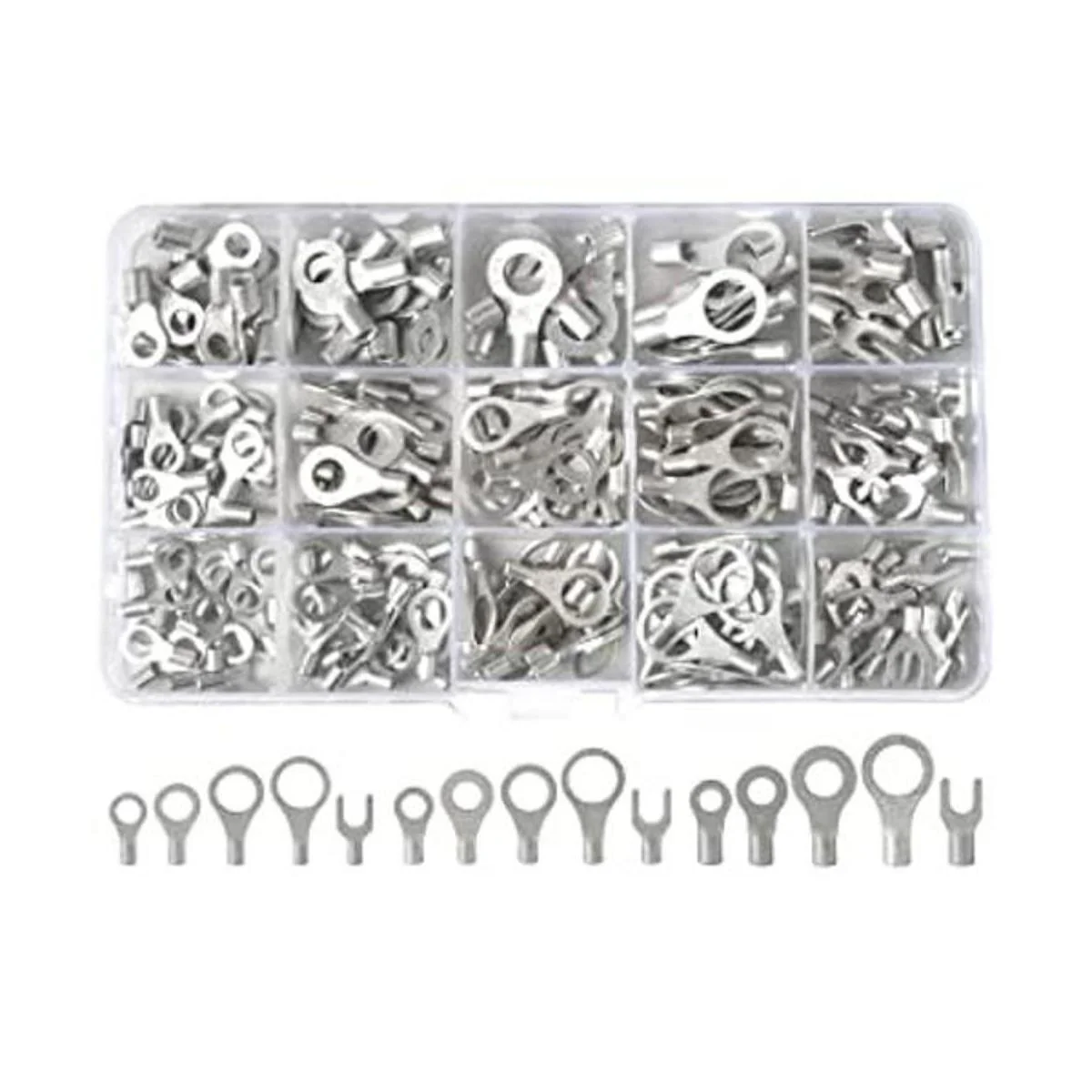 RockDIG 260 terminales de horquilla de anillo de cobre AWG 2216 1614 1210, chapados en estaño, conectores de cable eléctrico no aislados