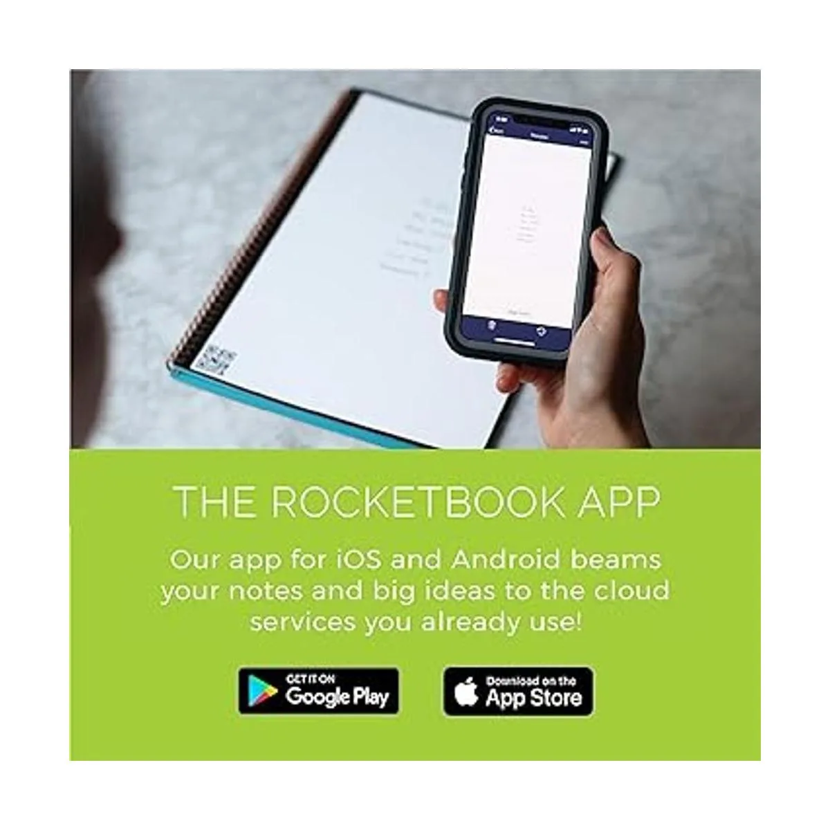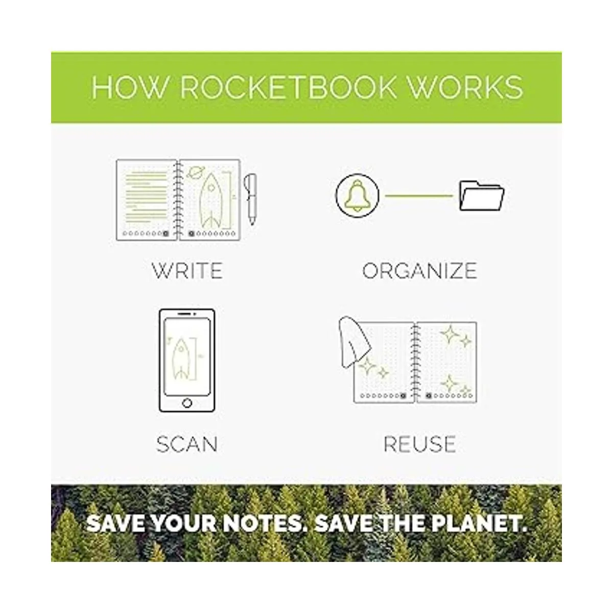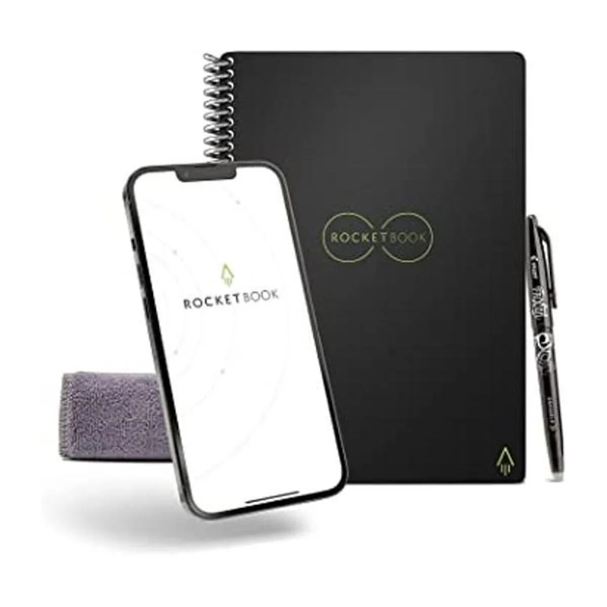 Rocketbook Cuaderno inteligente reutilizable, cuaderno con cuadrícula de puntos ecológico con 1 bolígrafo Pilot Frixion y 1 paño de microfibra incluido cubierta negra infinito, tamaño carta 8.5 x 11 pulgadas, número de modelo EVRLKA