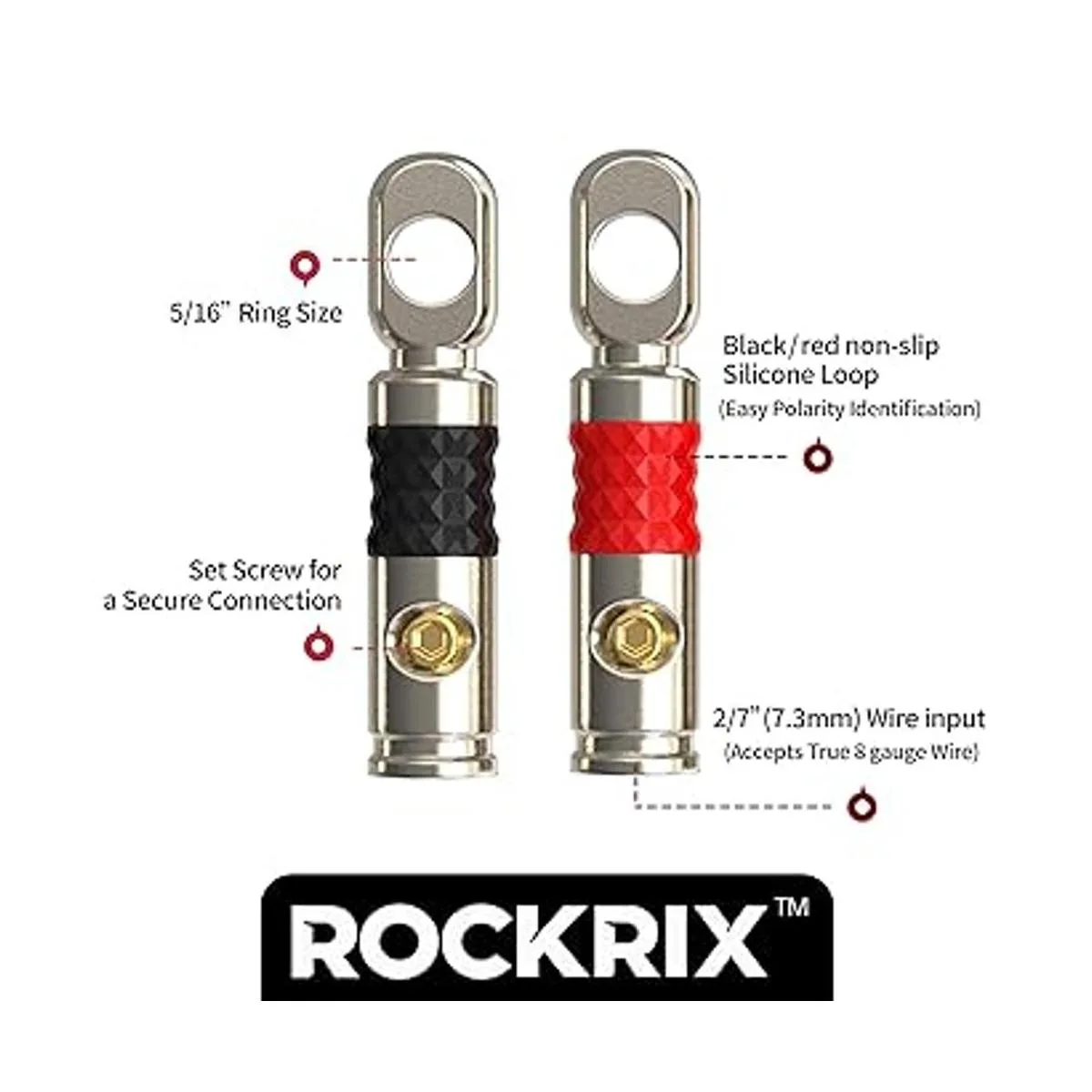 ROCKRIX True Copper 8 AWG Gauge Set Tornillo Batería Cables Conectores Terminales de anillo niquelado