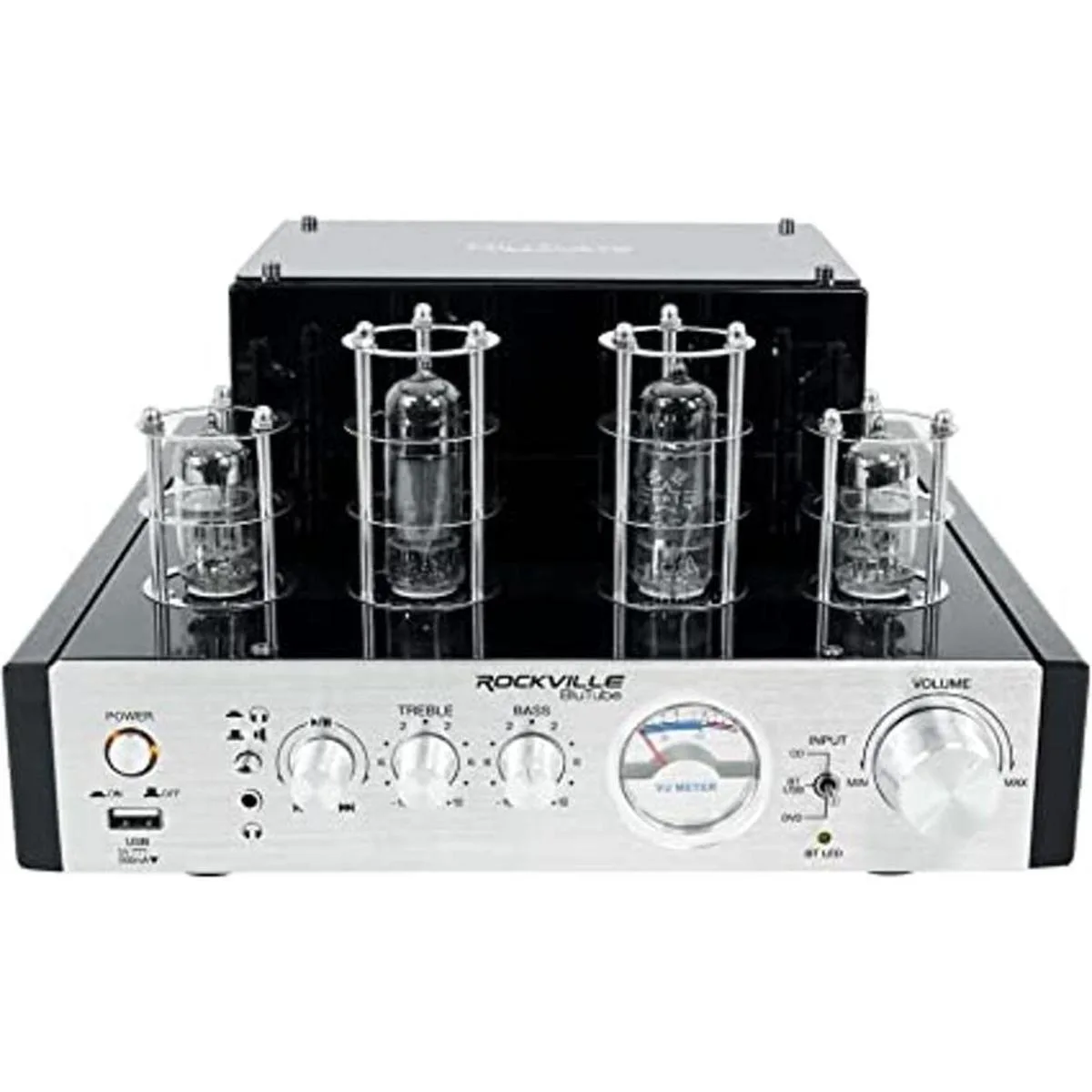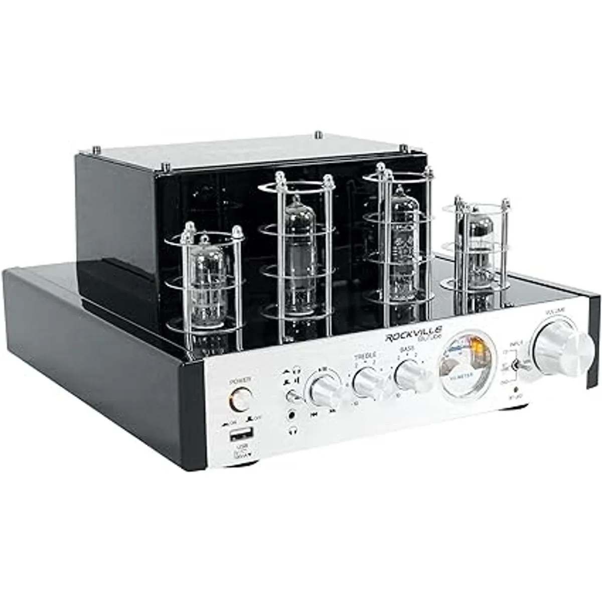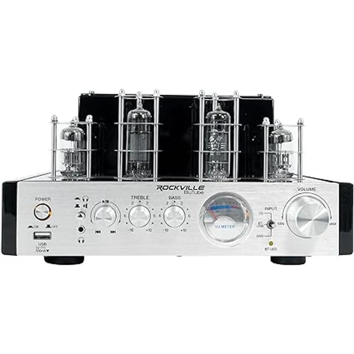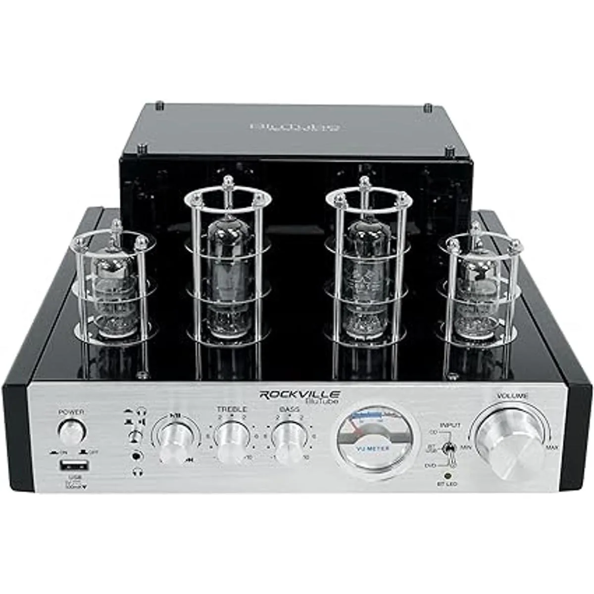 Rockville Amplificador de tubo de grado audiófilo BluTube con Bluetooth. 25 W x 2 RMS 8 ohmios. 35 W x 2 RMS 4 ohmios. Los amplificadores de tubo no se enganchan incluso a grandes volúmenes y son extremadamente eficientes. Debido a esto, el amplificador suena más como el doble de potencia nominal.