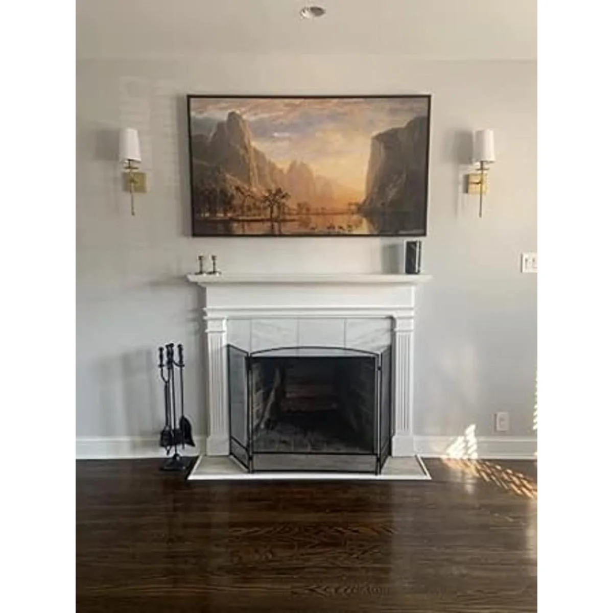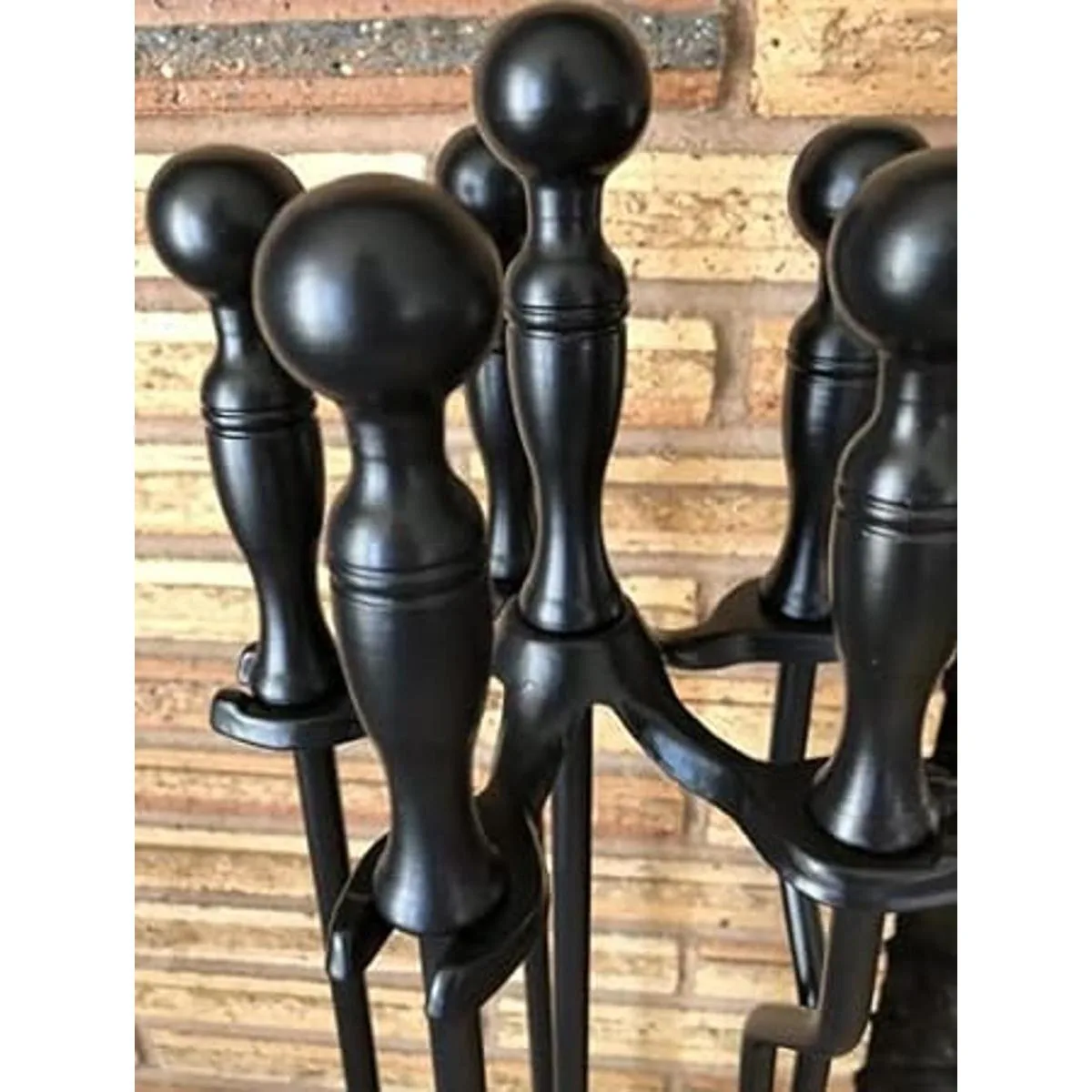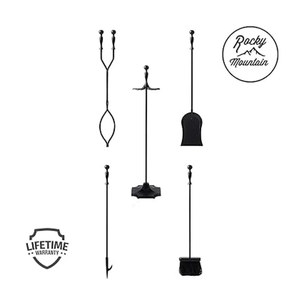 Rocky Mountain Goods Juego de 5 herramientas para chimenea de 31 pulgadas, grande, pala, cepillo, póker, pinzas, soporte, herramientas de hierro forjado resistente con acabado decorativo, asas ergonómicas de bolas negro