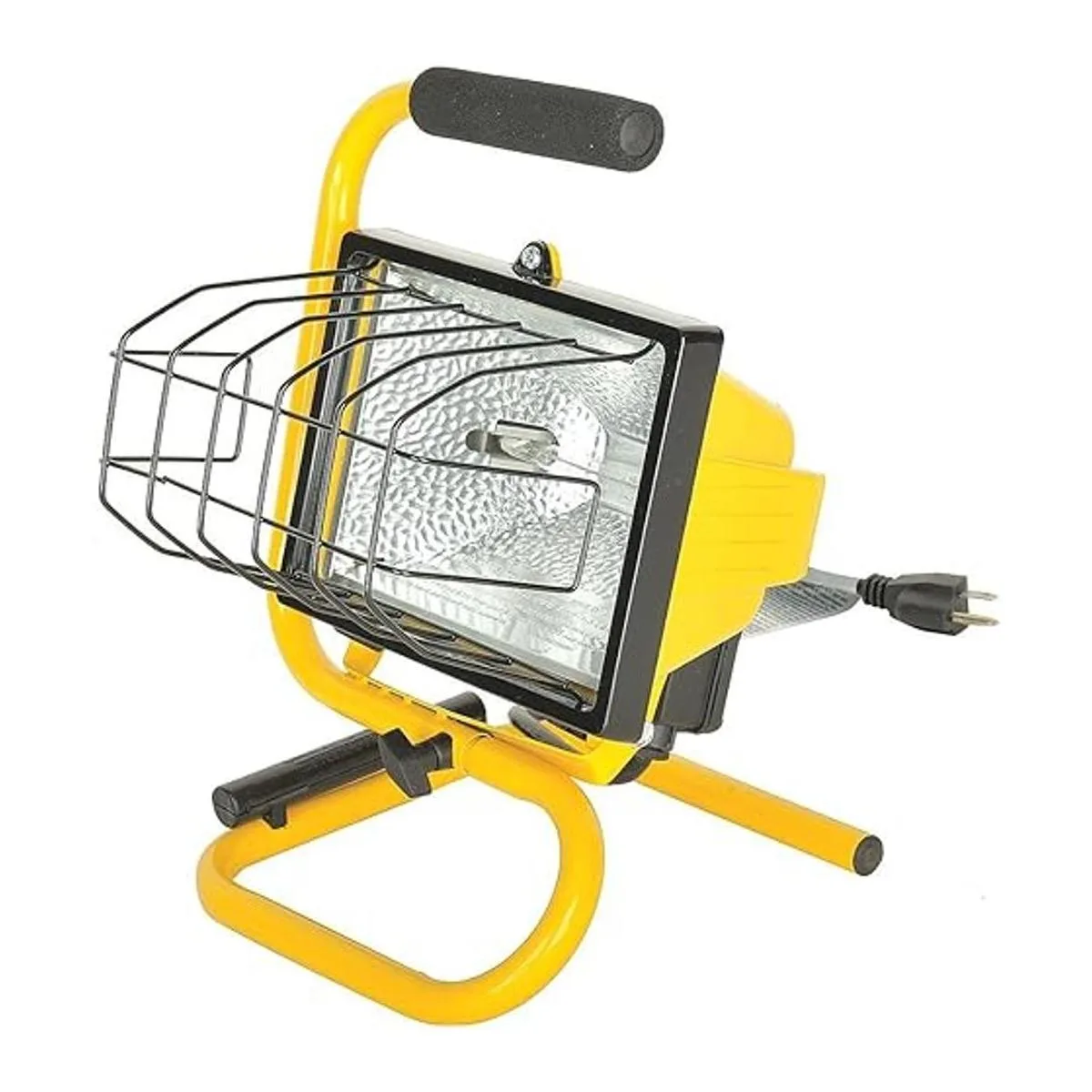 Rocky Mountain Goods Lámpara halógena de trabajo con soportemango 500 W, ángulo de iluminación ajustable, mango de agarre, protector de lentes, carcasa de aluminio industrial, cable de alimentación de 4.9 ft