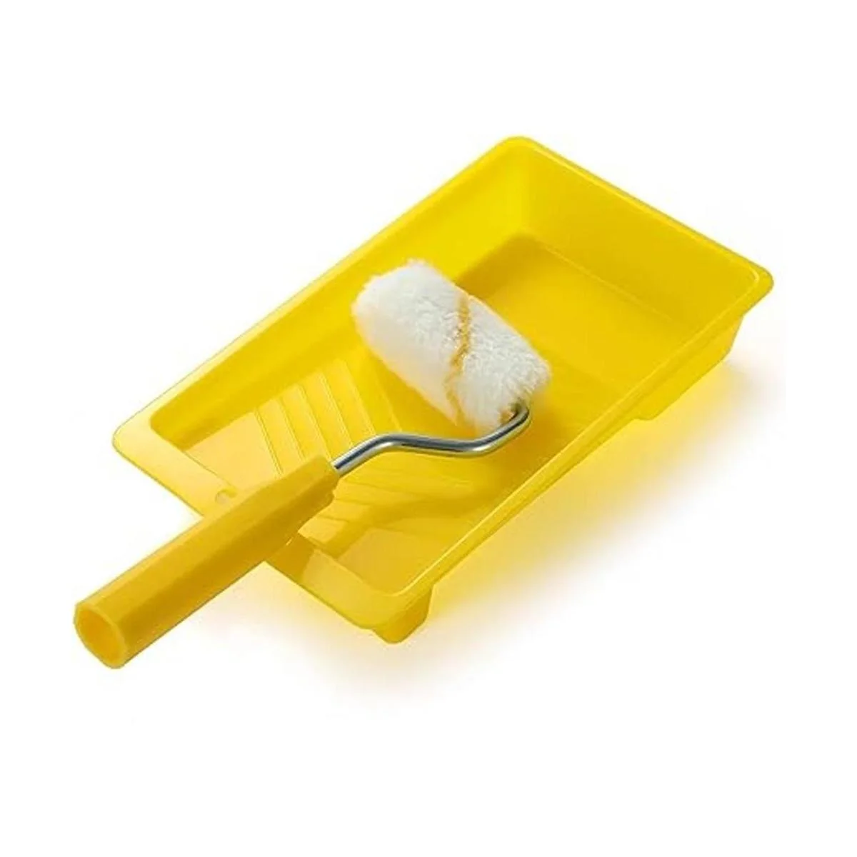 Bandeja y marco de pintura: el marco del rodillo está hecho de una construcción de metal con un mango de plástico hecho con un alto estándar y es el mismo que la mini bandeja de pintura de plástico, está hecha de plástico duro duradero que no se agrieta ni se flexiona fácilmente.