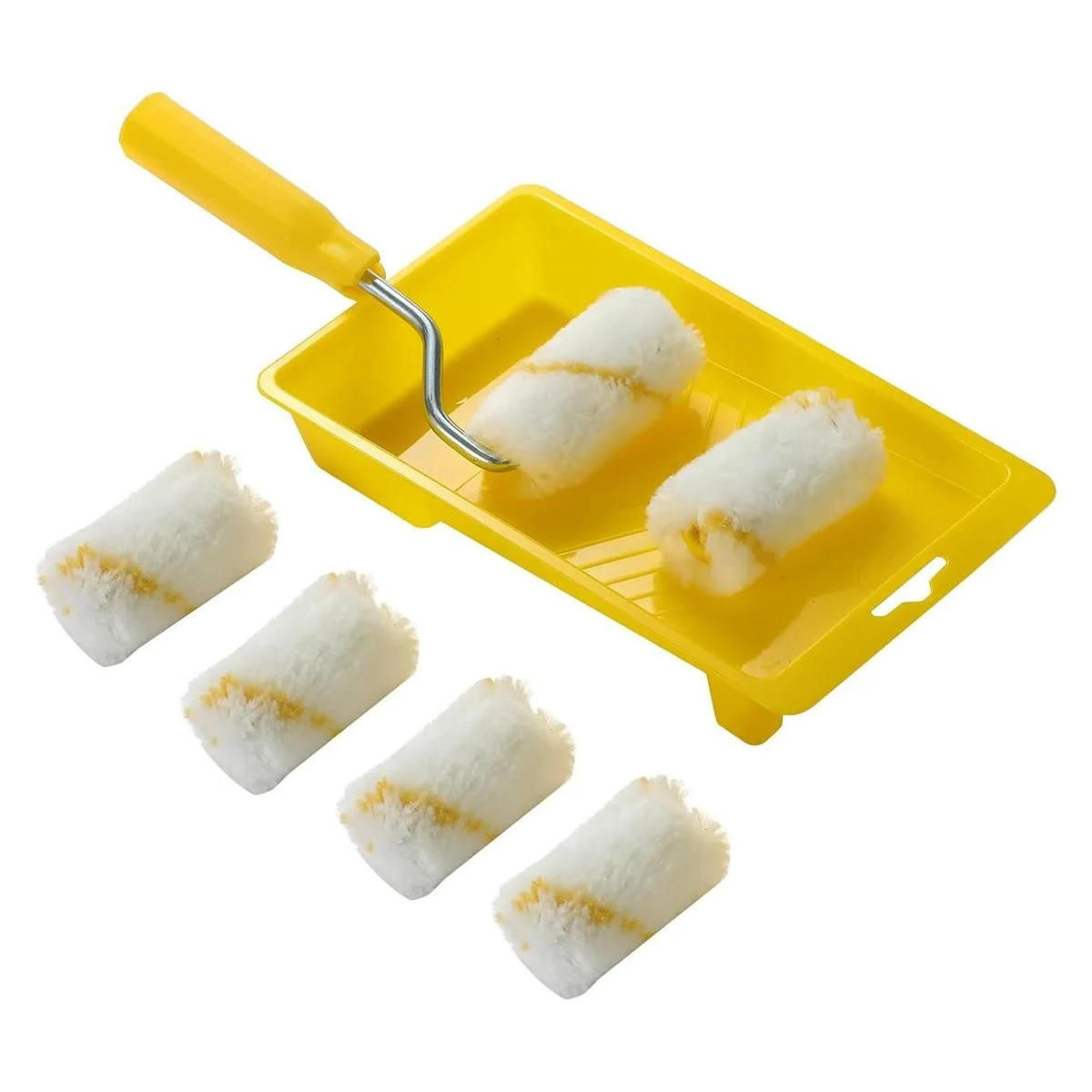 Rodillo de pintura de 2 pulgadas, juego de mini bandeja de pintura de plástico, marco de rodillo, cubiertas de rodillo de microfibra, kit de retoque con bandeja