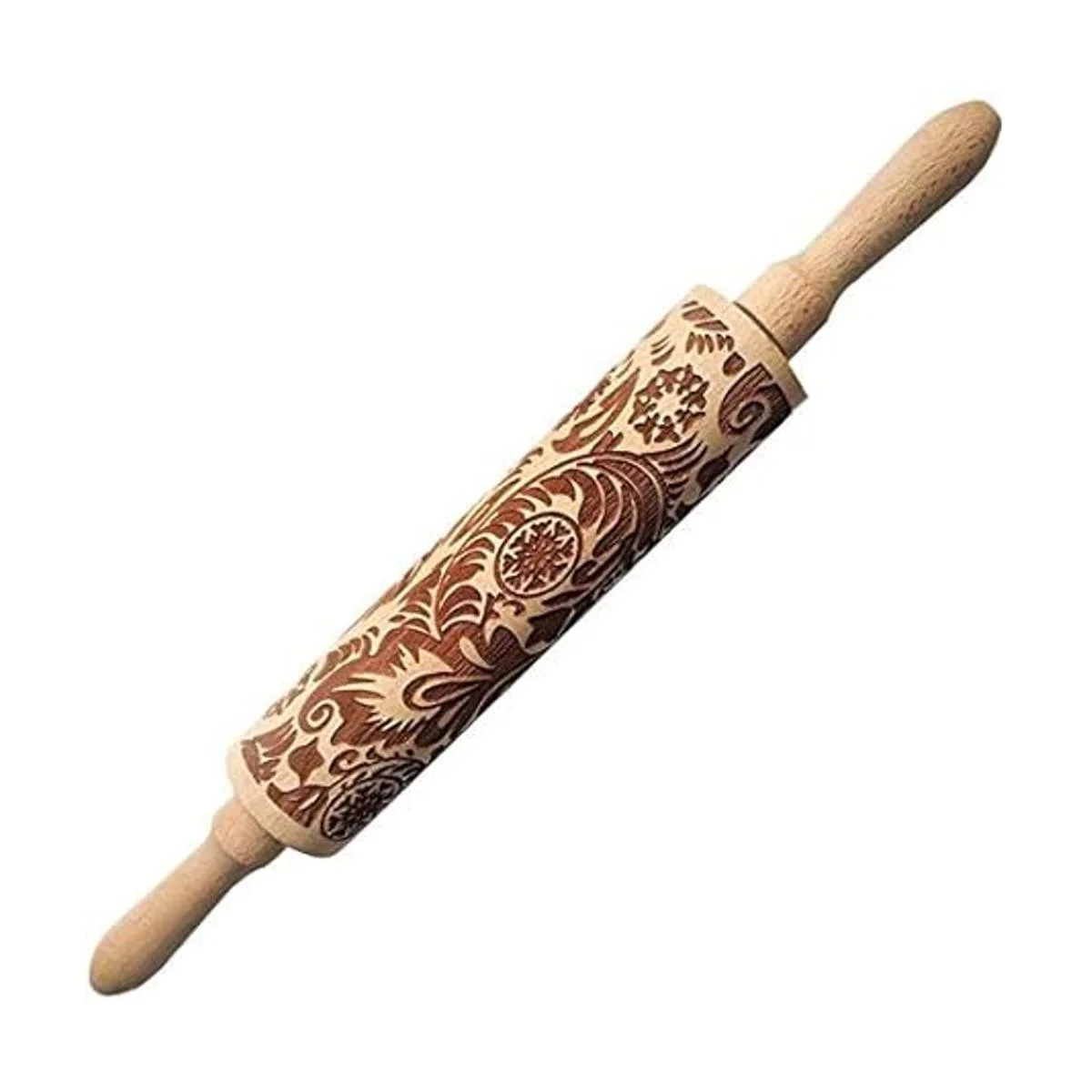 Rodillos en relieve para Navidad, patrón de cachemira 3D, copo de nieve, ratán, de madera, con grabado láser, herramienta de bricolaje, rodillo para niños y adultos para hacer masa de galletas 38 x 5