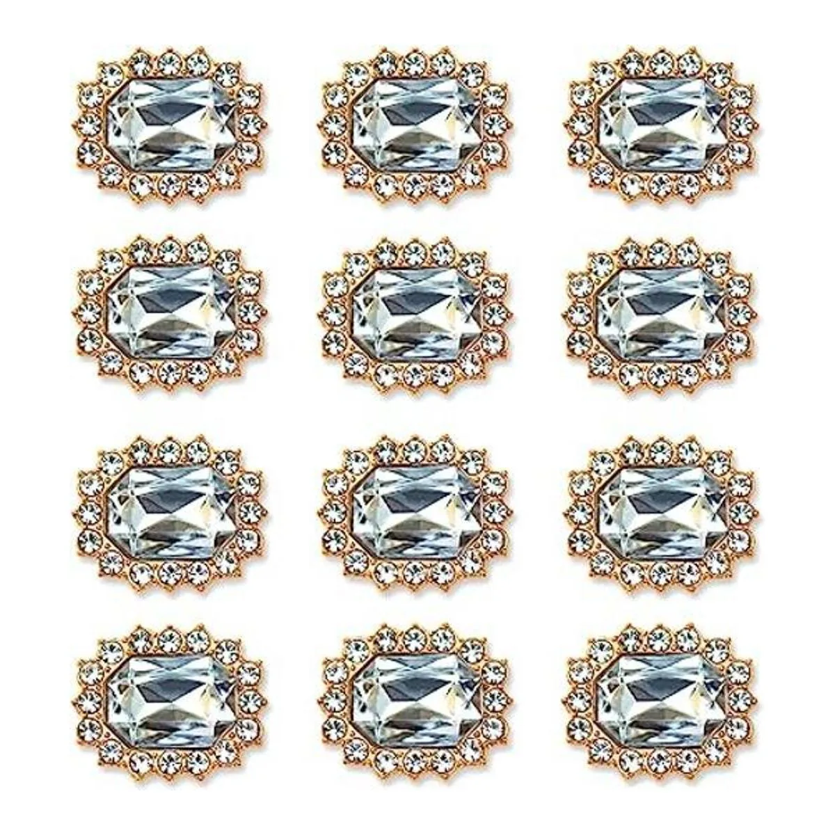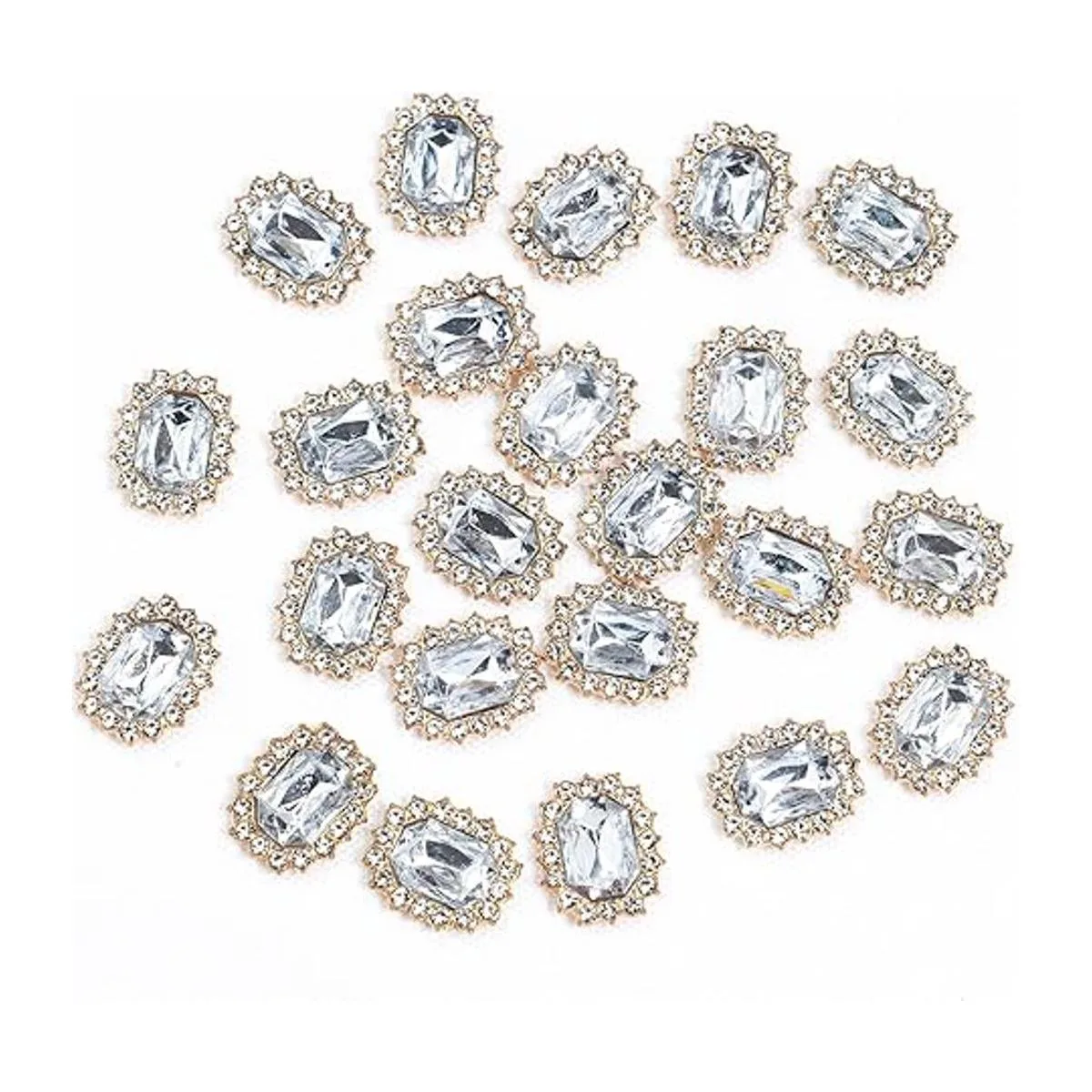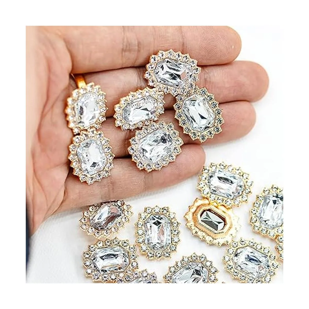 Rodvanvo 50 adornos de diamantes de imitación de lujo, decoración de cristal, botón de manualidades con fondo dorado, proyecto de bricolaje para diadema de flores transparente